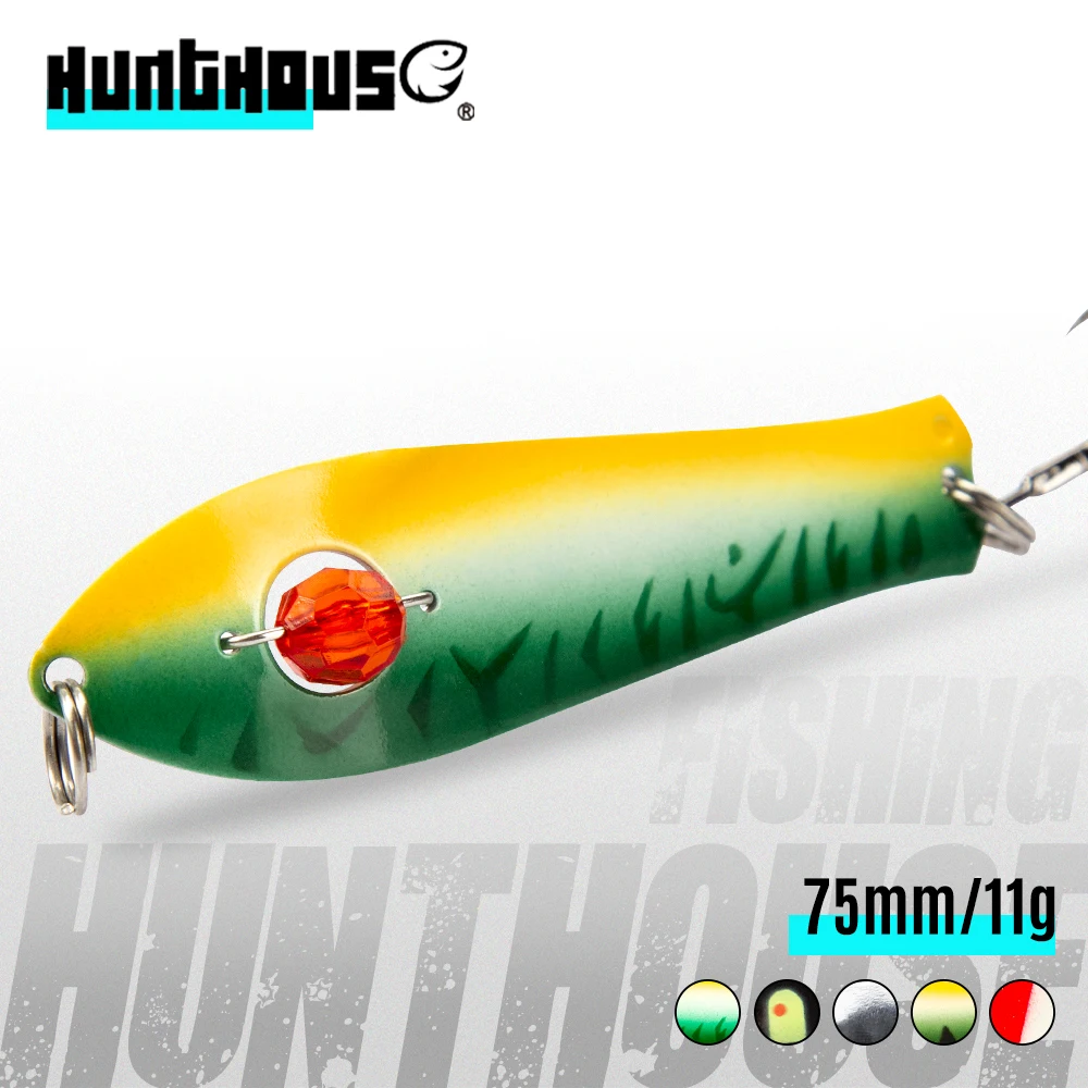 Hunthouse señuelo de metal spinners cuchara cebo duro pesca con curricán 75mm 11g latón VMC anzuelo hundido lucio perca agua dulce LW810 señuelos de pesca