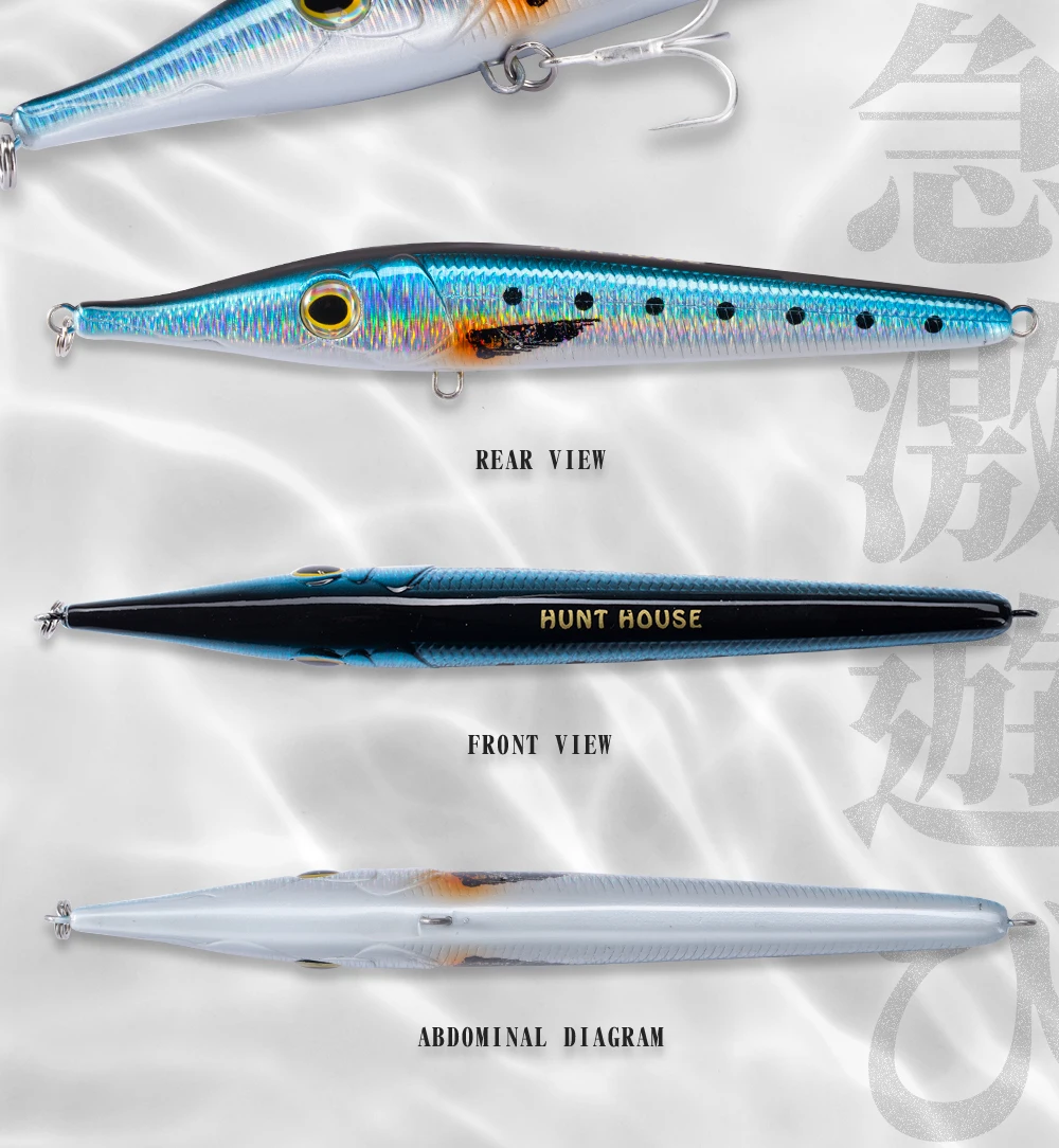 Señuelo de pesca con lápiz flotante de Hunthouse, cebo duro hundido de boca delgada, 146mm, 19g, 35g, cebo de fundición larga para aparejos de aguja de lubina