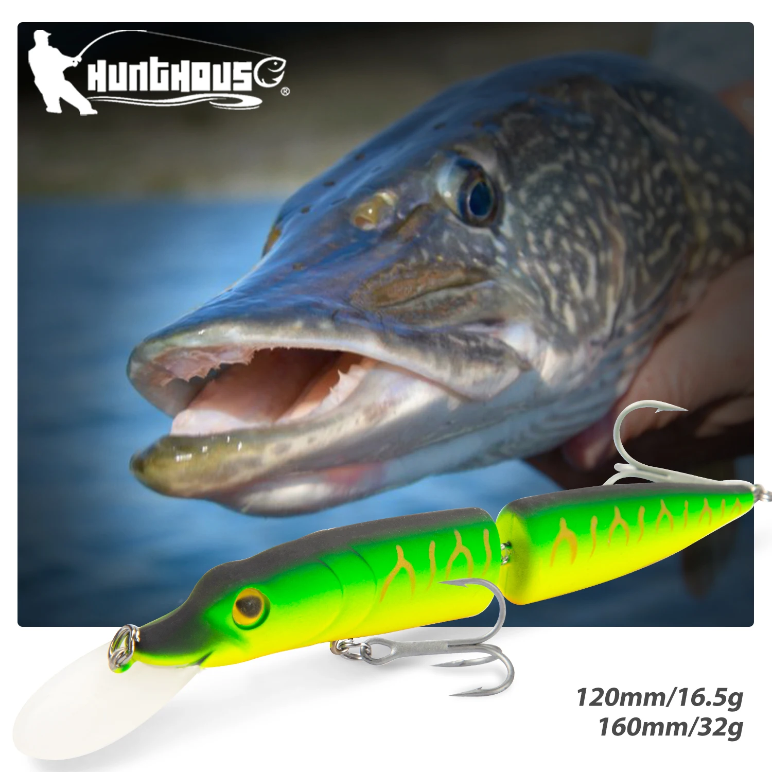 Hunthouse-señuelo de pesca de Lucio, wobber muskies, minnow, cebo articulado duro, swimbait, 12cm/16cm, 15,5/32g, pesca de invierno