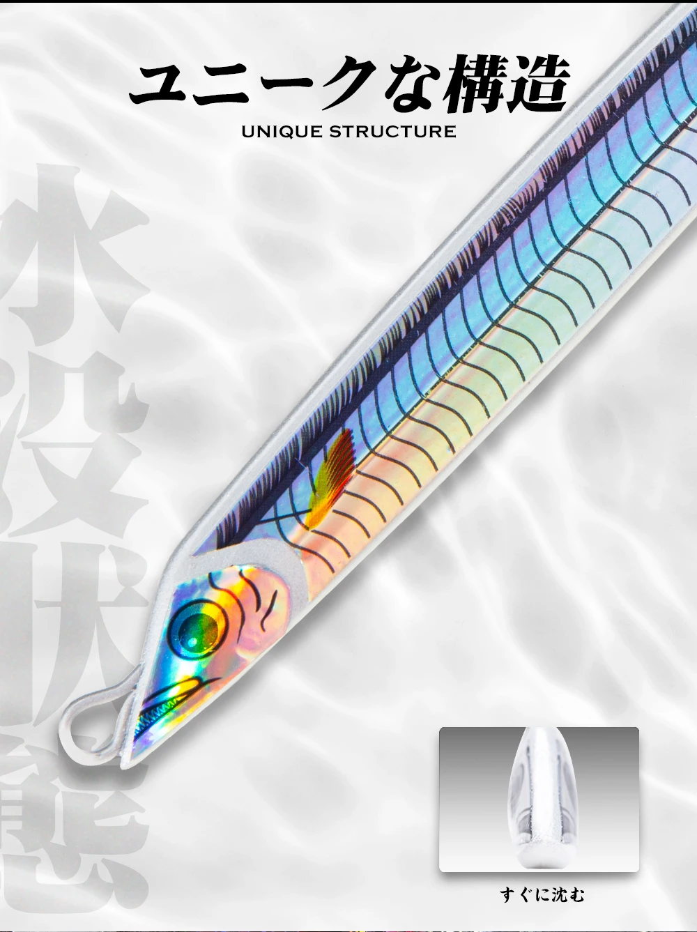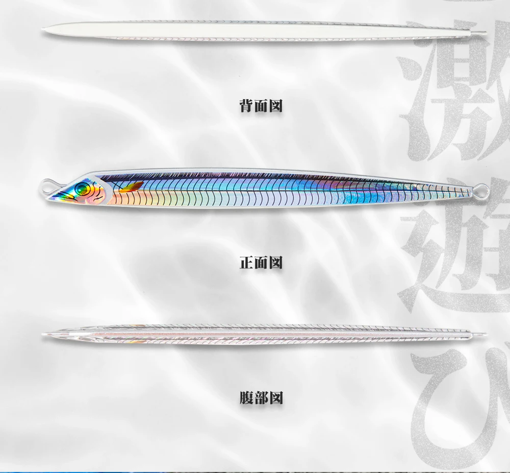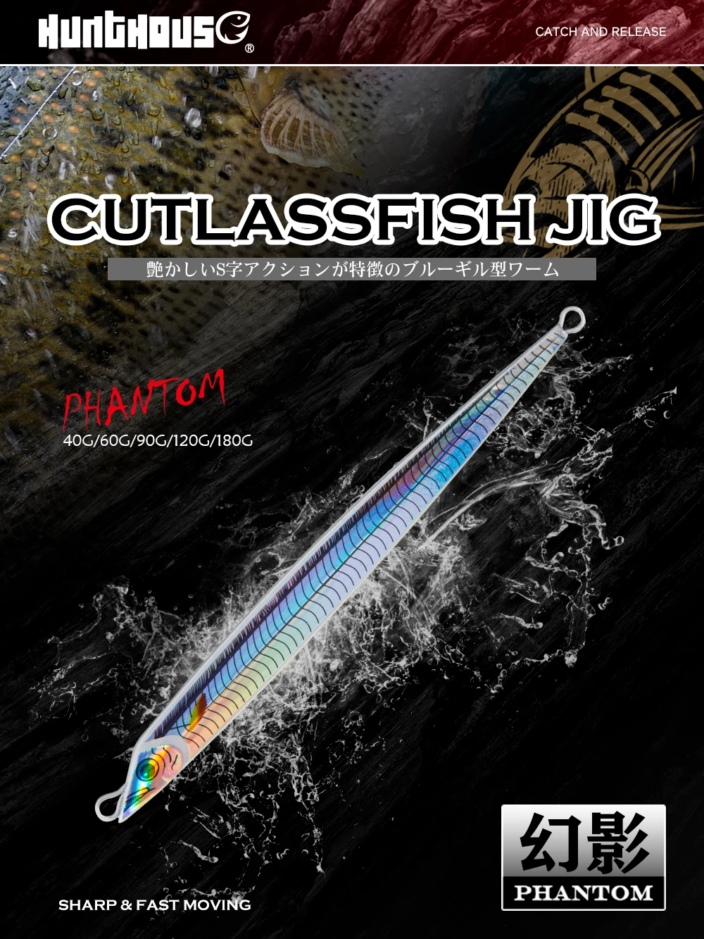 La plantilla de “Real Cutlassfish” está diseñada específicamente para imitar los movimientos verticales de un cutlassfish en el océano. Los movimientos nítidos y rápidos seguidos de un gran tobogán atraen la atención de los depredadores y la acción voladora en el descenso de los jigs atrae la mordida. Esta es una plantilla de pez grande e imita perfectamente el perfil esbelto, brillante de las especies que comen estos depredadores.