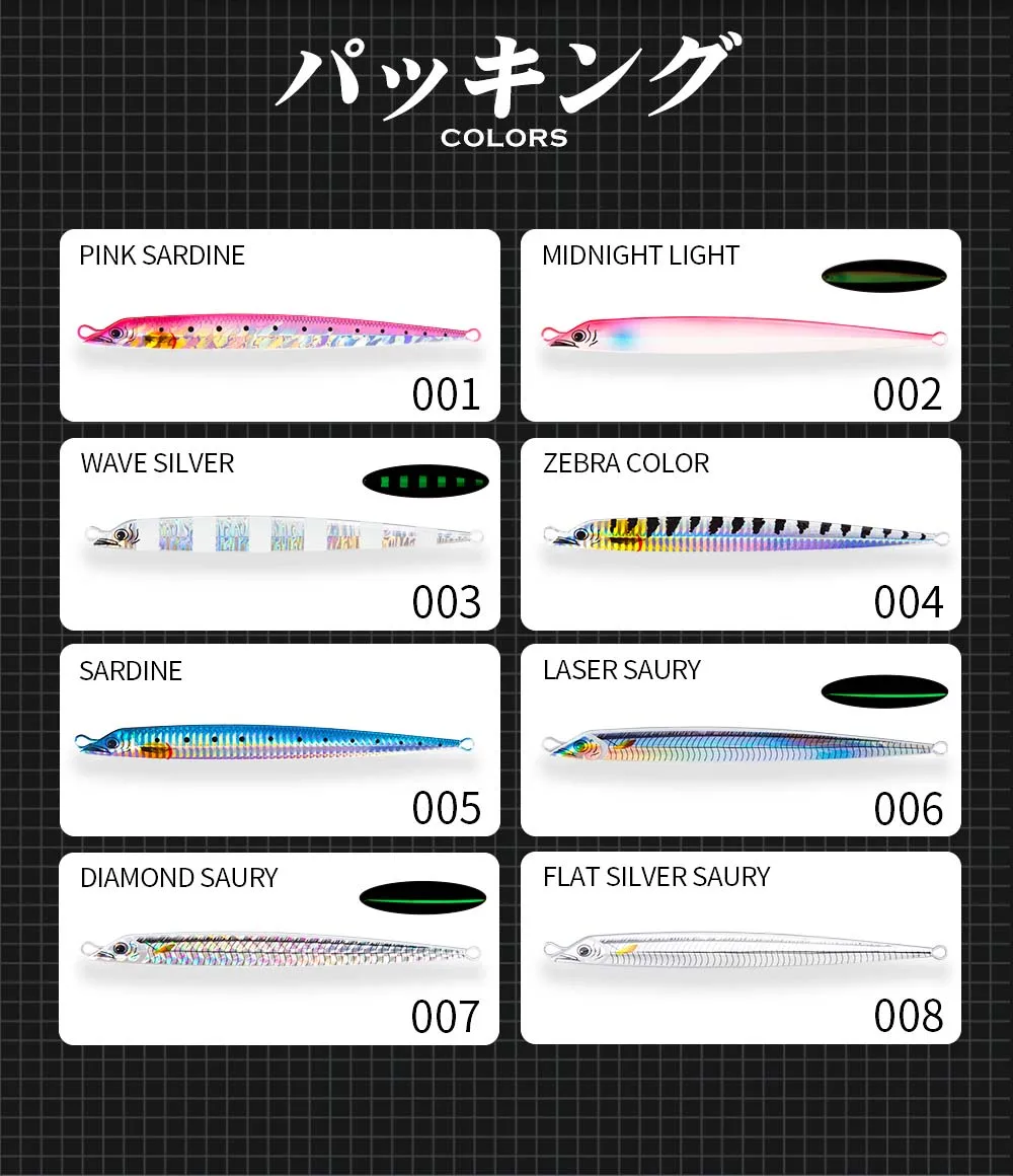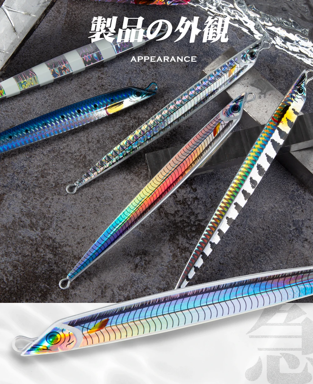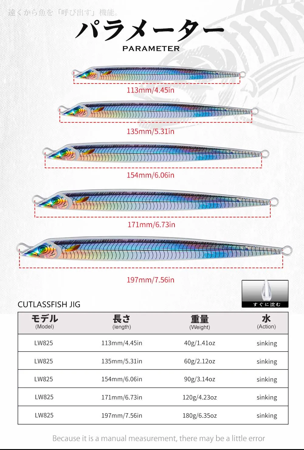 La plantilla de “Real Cutlassfish” está diseñada específicamente para imitar los movimientos verticales de un cutlassfish en el océano. Los movimientos nítidos y rápidos seguidos de un gran tobogán atraen la atención de los depredadores y la acción voladora en el descenso de los jigs atrae la mordida. Esta es una plantilla de pez grande e imita perfectamente el perfil esbelto, brillante de las especies que comen estos depredadores.