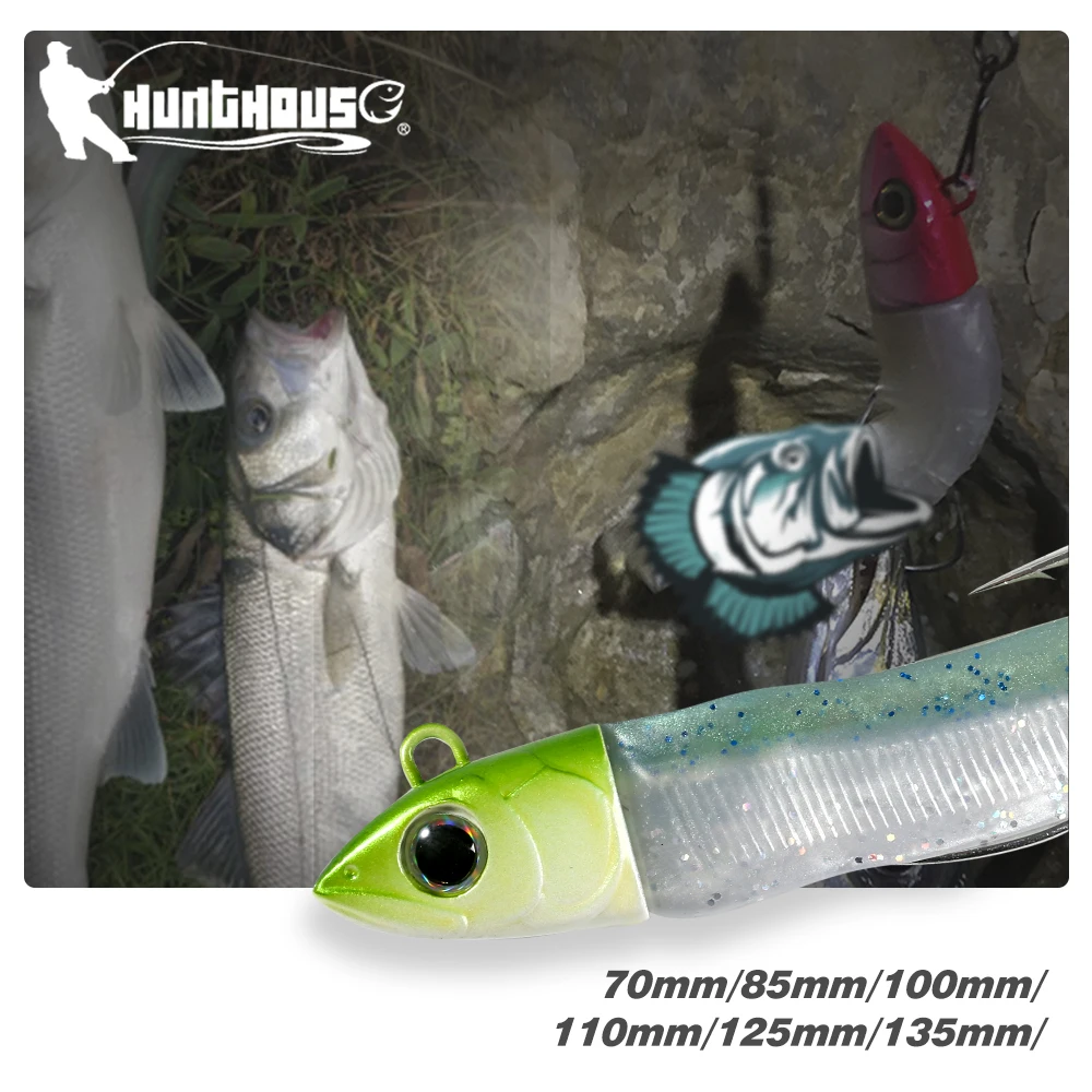 Hunthouse-señuelo de pesca de pececillo negro, cebo suave con cabeza de anzuelo, pez de lubina, Swimbait giratorio, Wobber de Baitcasting