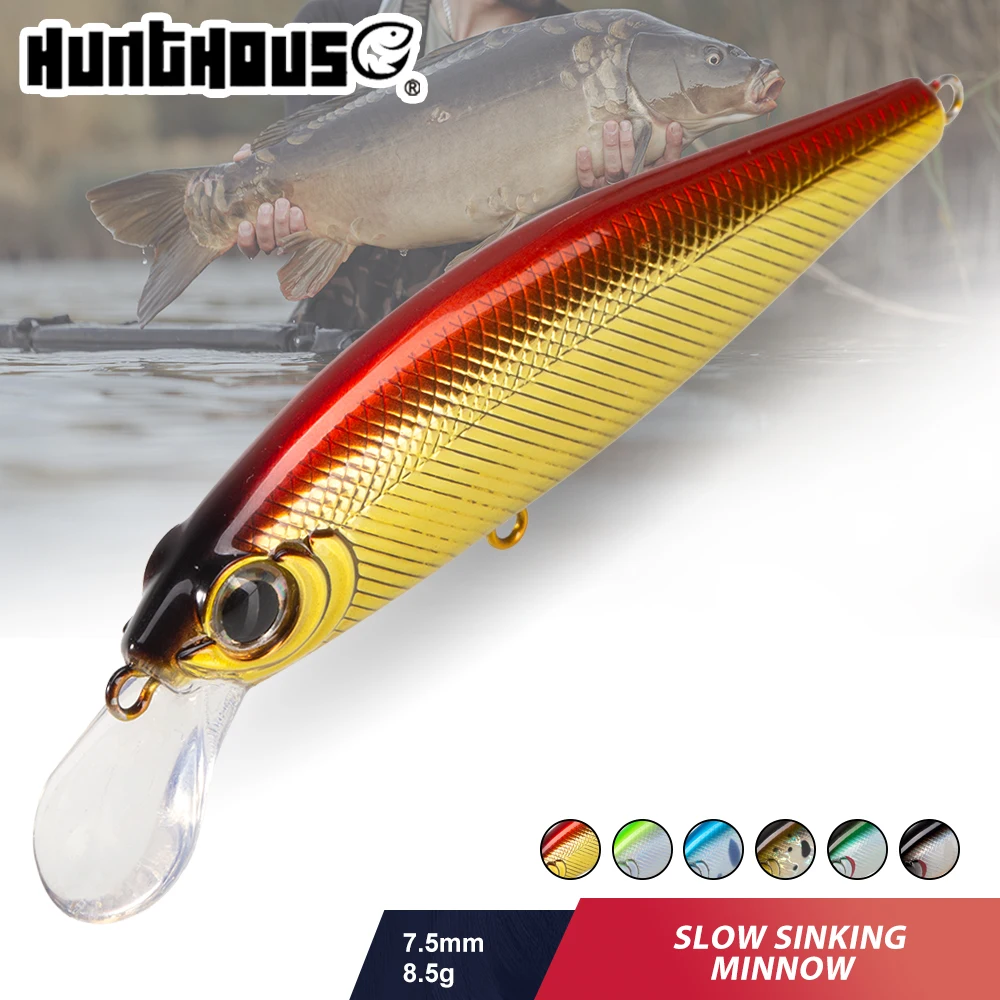 Señuelo de pesca de pececillo plano Hunthouse Rigge, cebo duro de hundimiento lento, Wobbler, 75mm, 8,5g, Artificial, agua salada, Lucio, lubina, aparejos de peces de mar