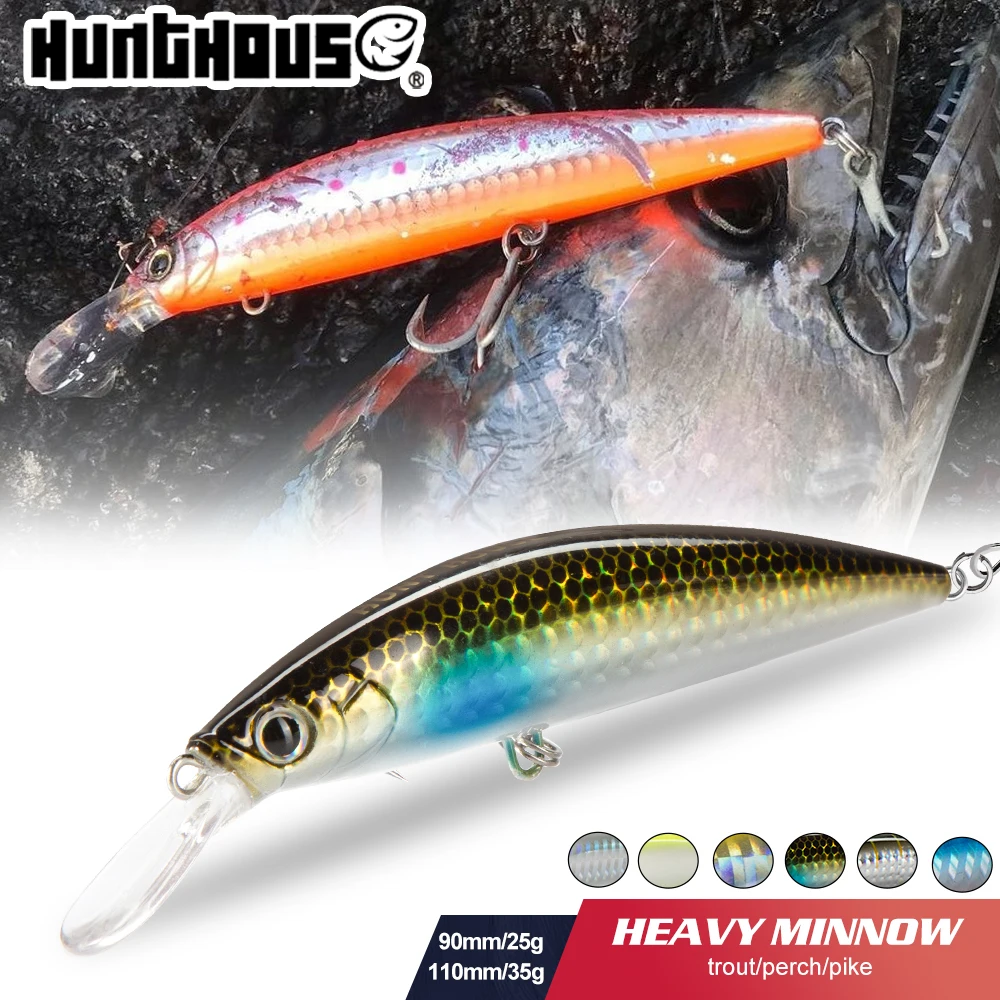 Señuelo de pececillo pesado de pesca Hunthouse 90mm/110mm 25g/35g, manivela de wobblers rodante de fundición larga para bajo, pesca de agua saladaModelo: LW435