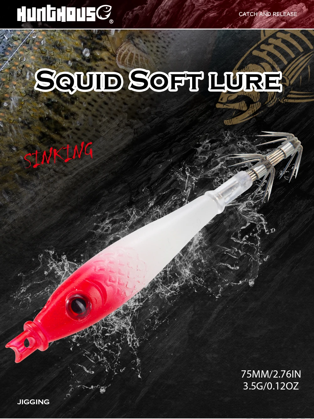 Hunthouse-señuelo de pesca con plantilla de calamar EGI, cebo duro suave que se hunde 75mm 90mm para pulpo, calamar, sepia, aparejos de pesca de agua salada LW116