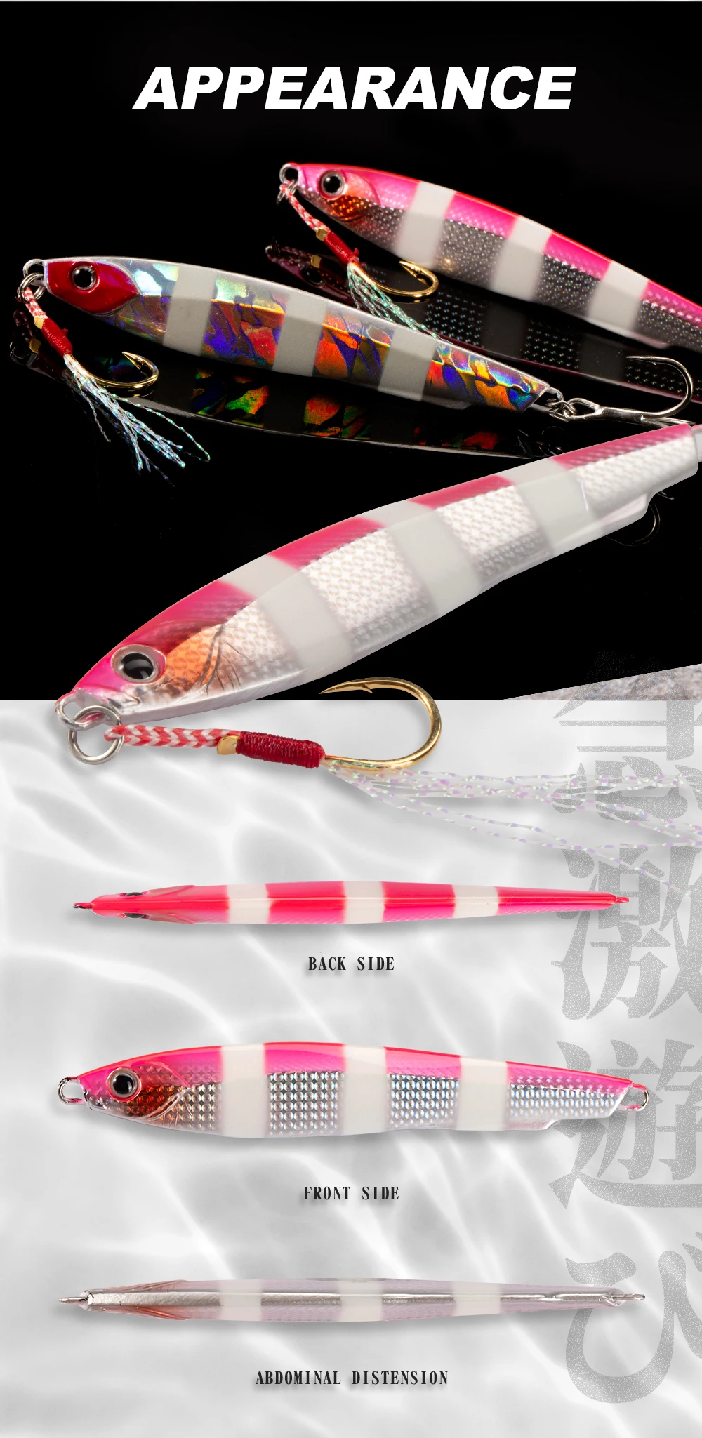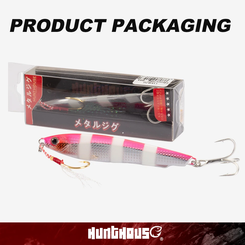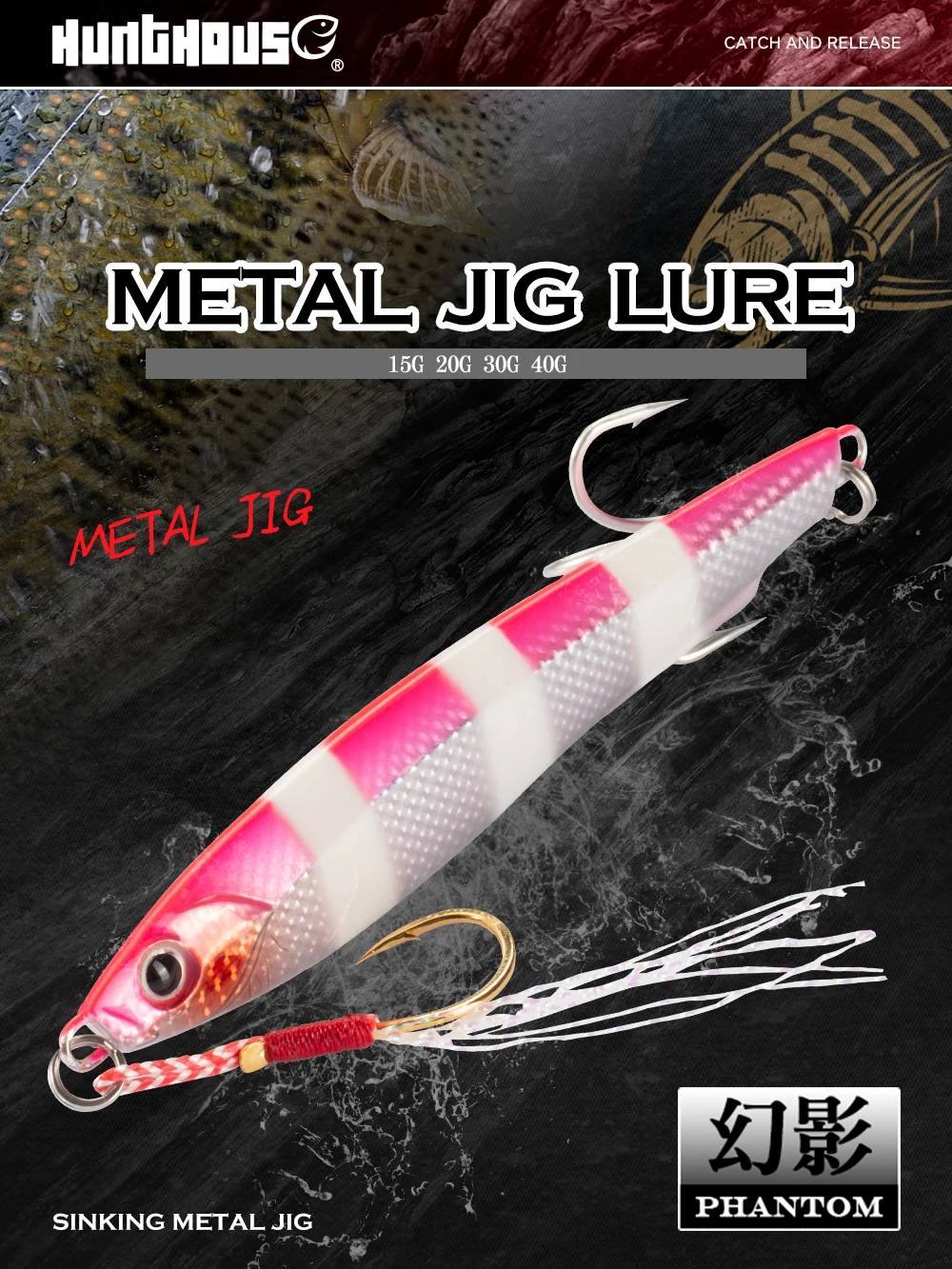 Señuelo de pesca con plantilla de Metal Hunthouse, cebo duro Jigging, cuchara hundida, 15g/20g/27,5g/36g, hundimiento lento luminoso para aparejos de lubina