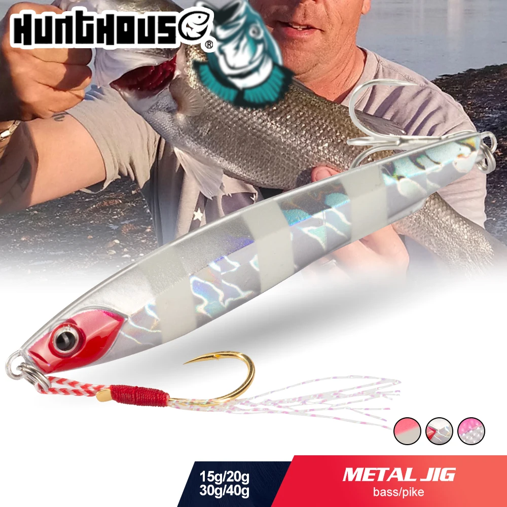 Señuelo de pesca con plantilla de Metal Hunthouse, cebo duro Jigging, cuchara hundida, 15g/20g/27,5g/36g, hundimiento lento luminoso para aparejos de lubina