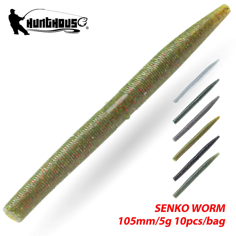 Señuelo de pesca suave Hunthouse, 105mm, 5g, 10 unidades/bolsa, gusano Senko, cebo Artificial de plástico para lubina, aparejos de pesca de agua salada/agua dulce