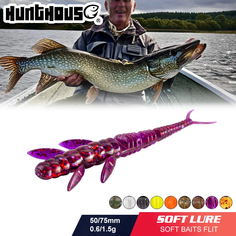 Hunthouse-señuelo de pesca suave, 50mm/0,6g, 75mm/1,5g, 10 unids/bolsa, rebotador de fondo para Lucio Zander Bass
