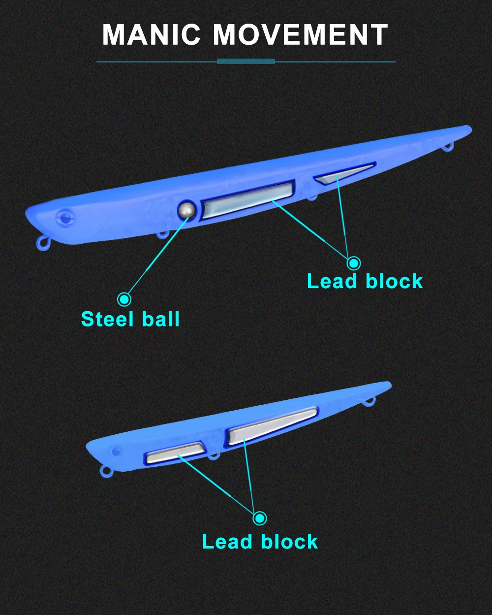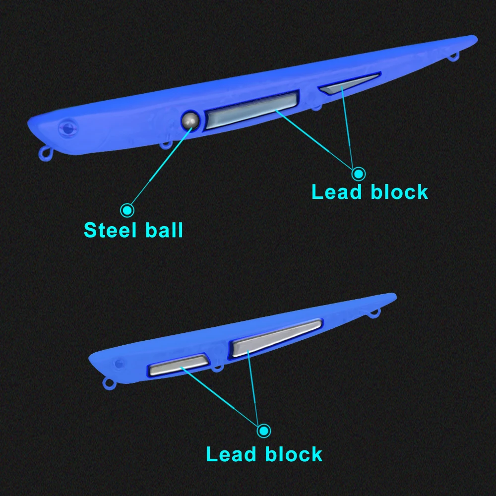 1. Bloque de plomo interno de acero inoxidable, peso medio del plomo para una acción estable y lanzamiento a mayor distancia.