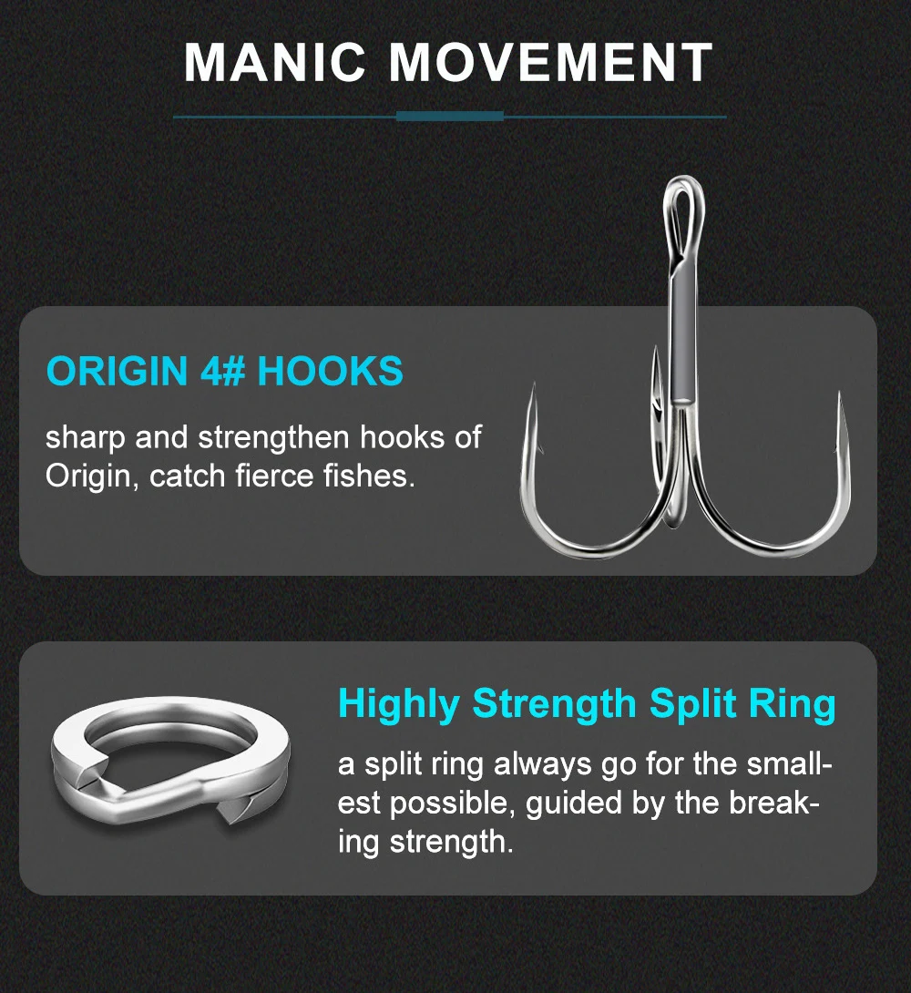 3. Los anzuelos originales están afilados y son más fuertes para atrapar a peces feroces.