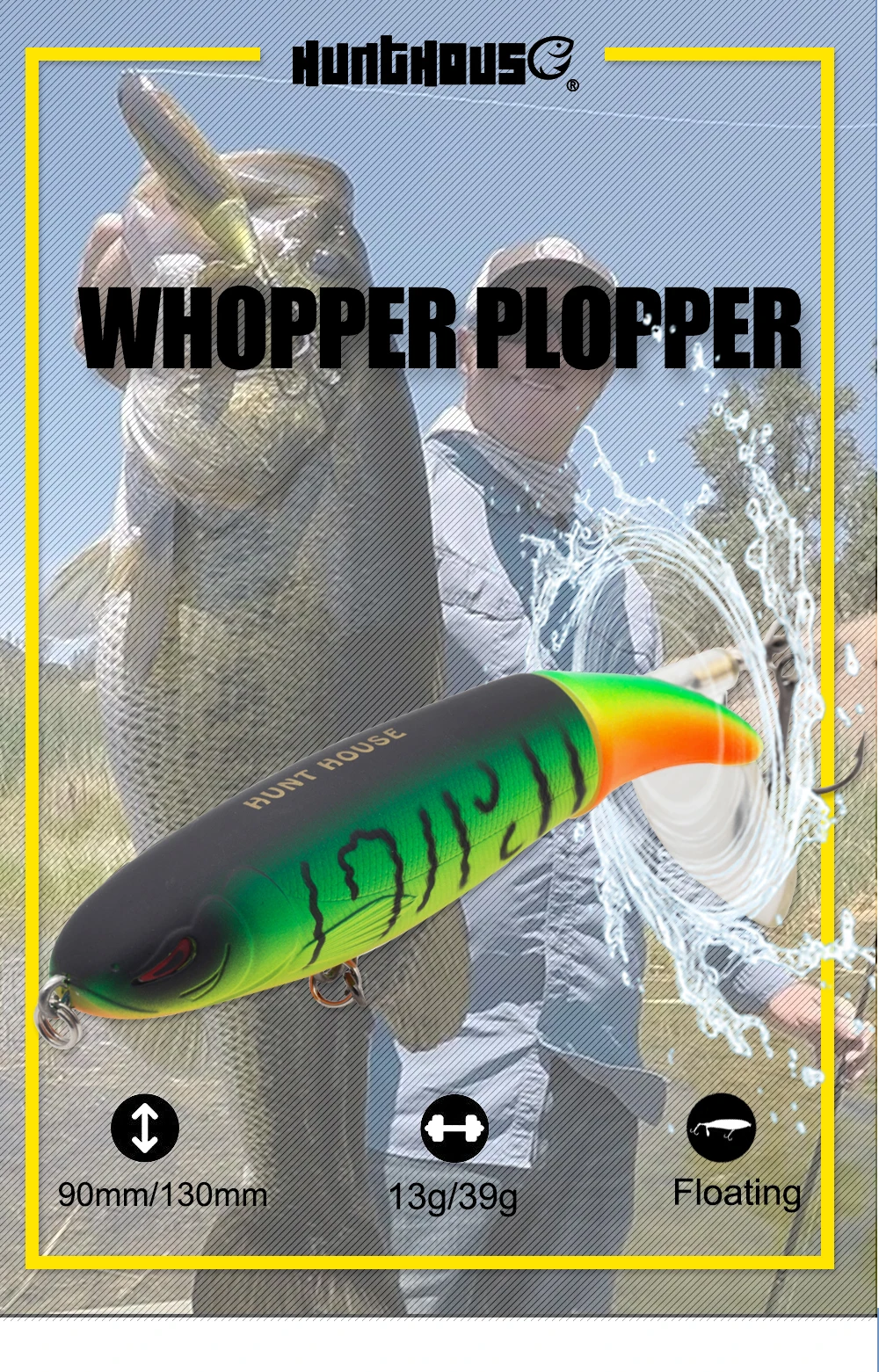 Hunthouse popper señuelo de pesca LW114 Whopper Plopper cebo de pesca 110mm 19g musky topwater señuelo de pesca hecho para lápiz de pesca