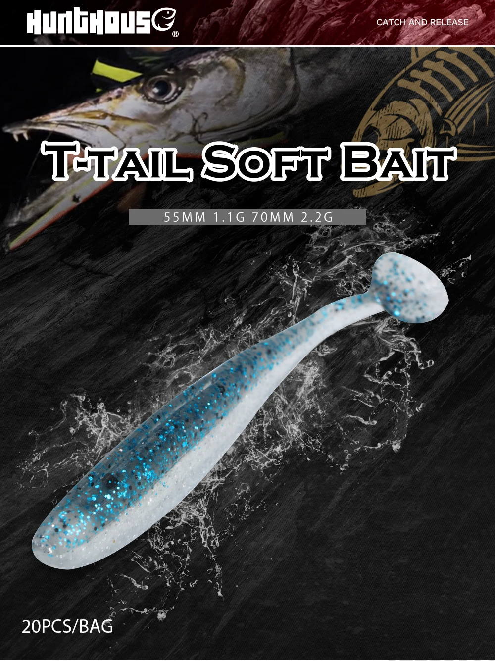 Hunthouse T-tail señuelo blando 55mm/1,1g 70mm/2,2g cebo blando de silicona Wobblers Swimbait fácil Shiner para lubina Lucio aparejos de peces LW242