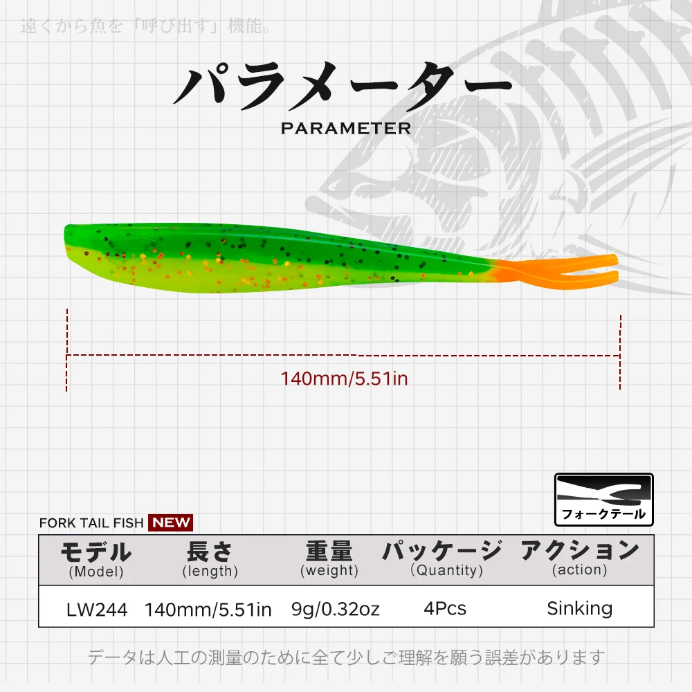 Un suave "pez cola de horquilla" para aparejo de texto y jigging.