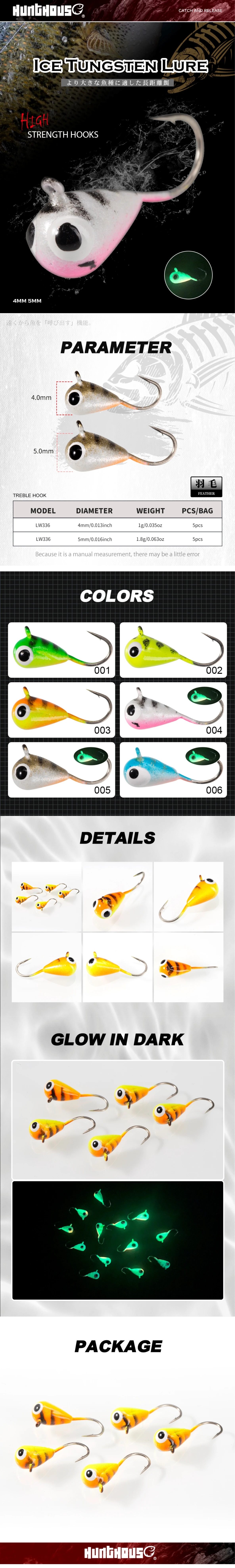 Hunthouse Ice Tungsten Lure with Glowing Paint 5Pcs/Bag Slow Metal Tungsten Jigs 4/5mm 1/1.8g Wenter Ice Fishing Hook Lure Baits