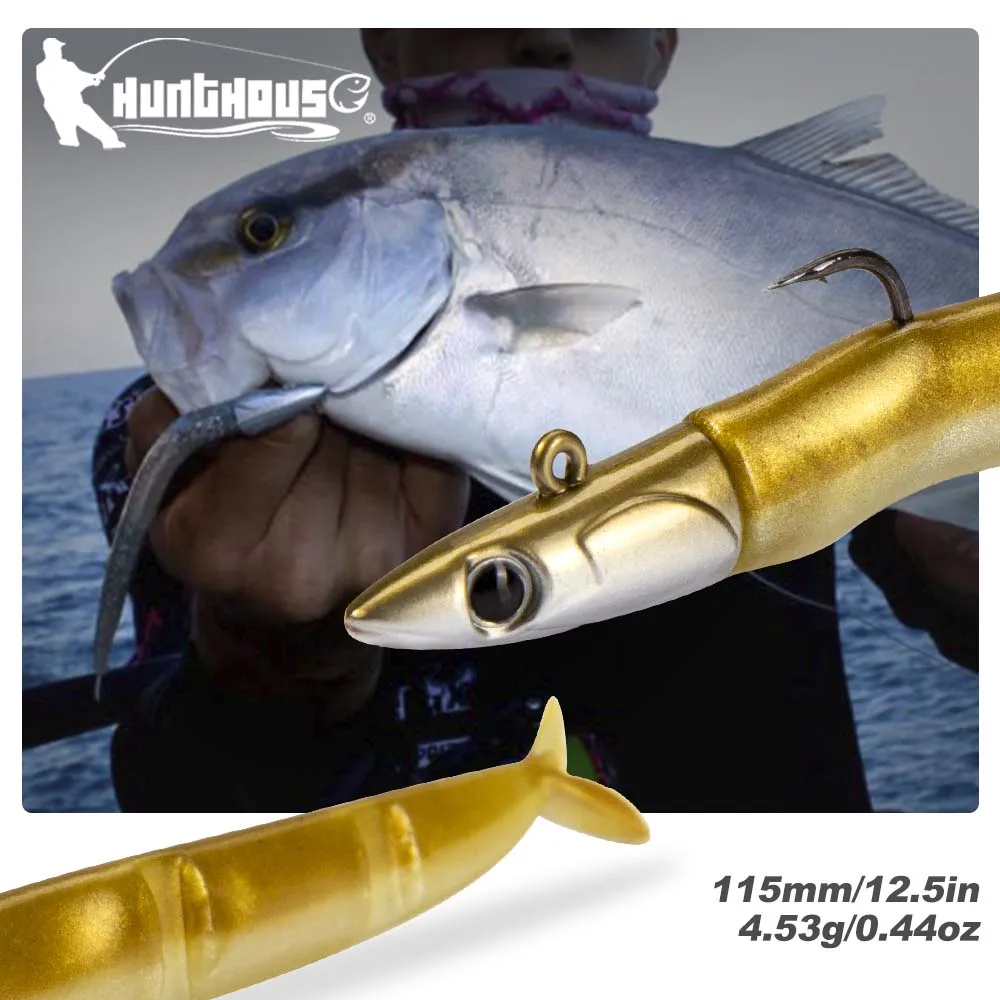 Hunthouse-SEÑUELOS blandos de pececillo negro, 112mm/12g, cabeza de plantilla, hundimiento para trucha lubina 2020, aparejos de pesca LW246