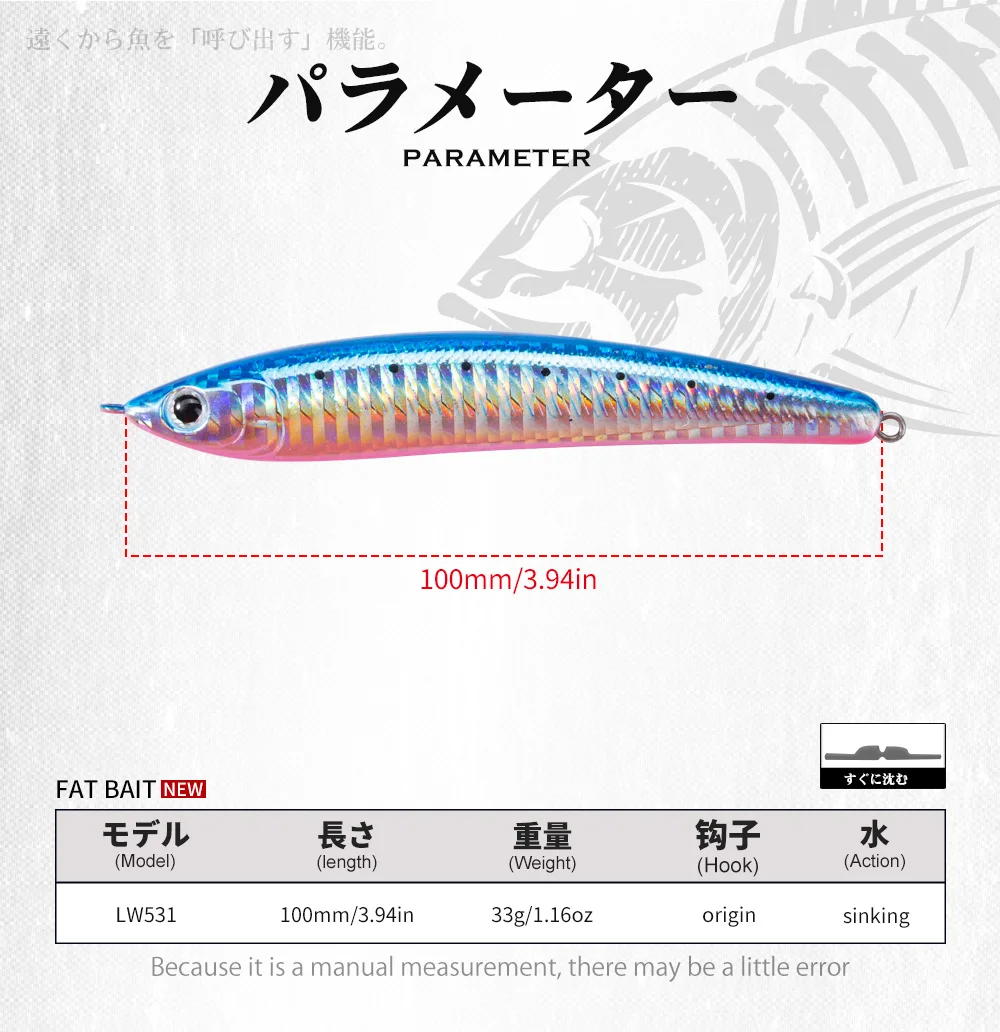 Hunthouse nuevo lápiz de hundimiento Señuelos de pesca 100mm 33g de fundición larga Stickabit Articial cebo duro trucha de lubina 2021 aparejos de pesca