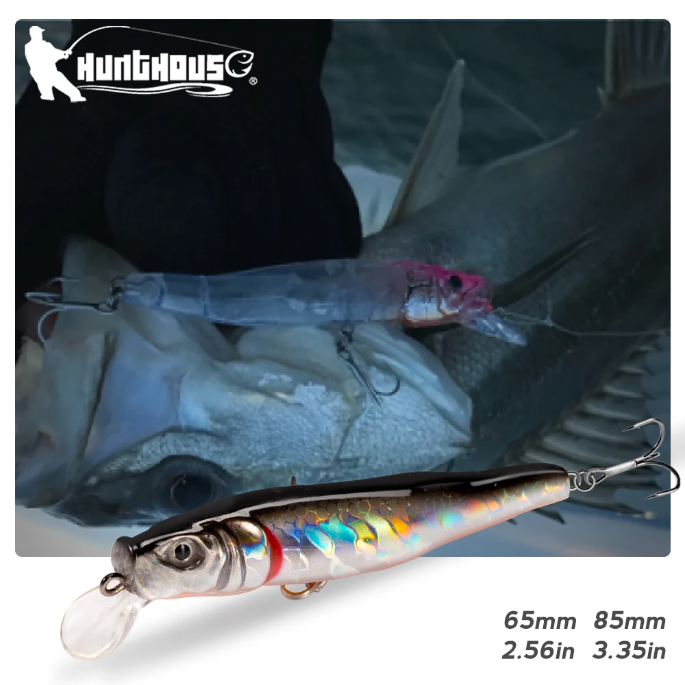 Hunthouse-SEÑUELOS DE PESCA DE pececillos, cebos flotantes de 65/80mm, 5/8g, Wobblers para Lucio, cebo Artificial, Swimbait de ruido