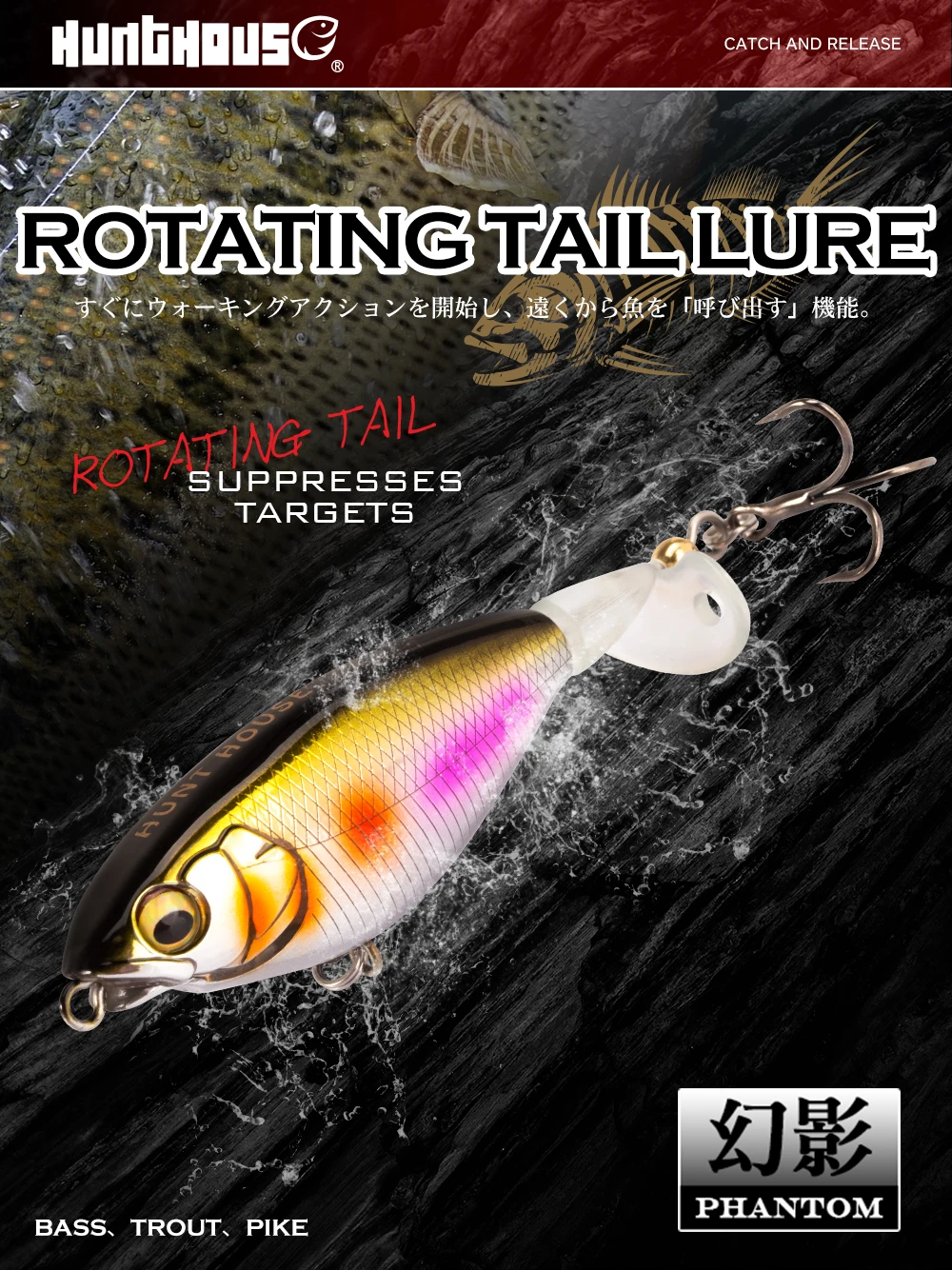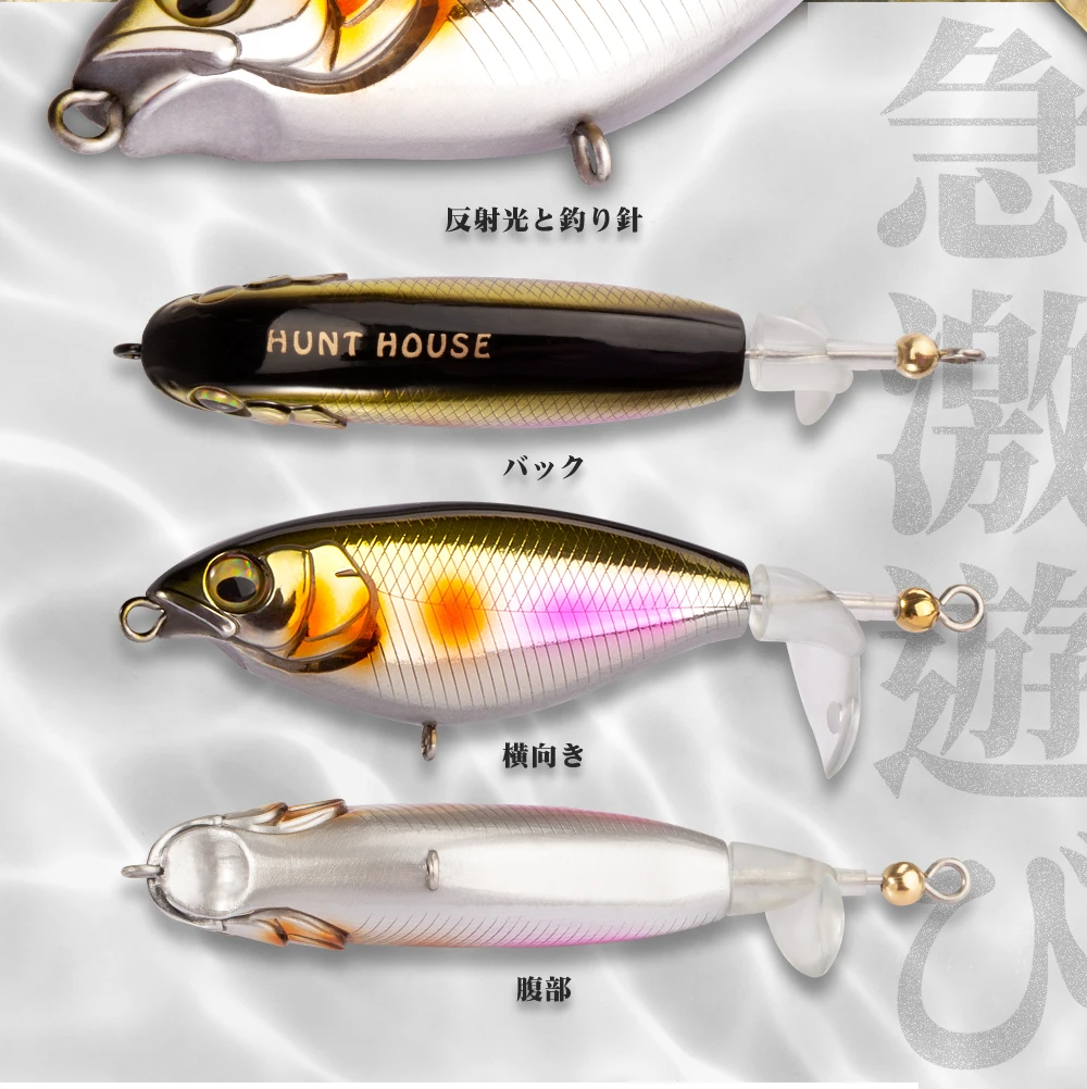 Hunthouse Whopper Popper 65 y 80mm 5,7 y 10,8g señuelo de pesca cebo Topwater cola giratoria Top Water Popper wobblers para pesca de lubina