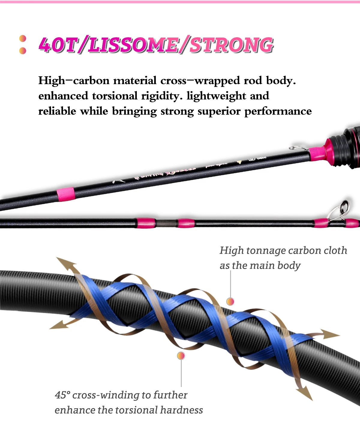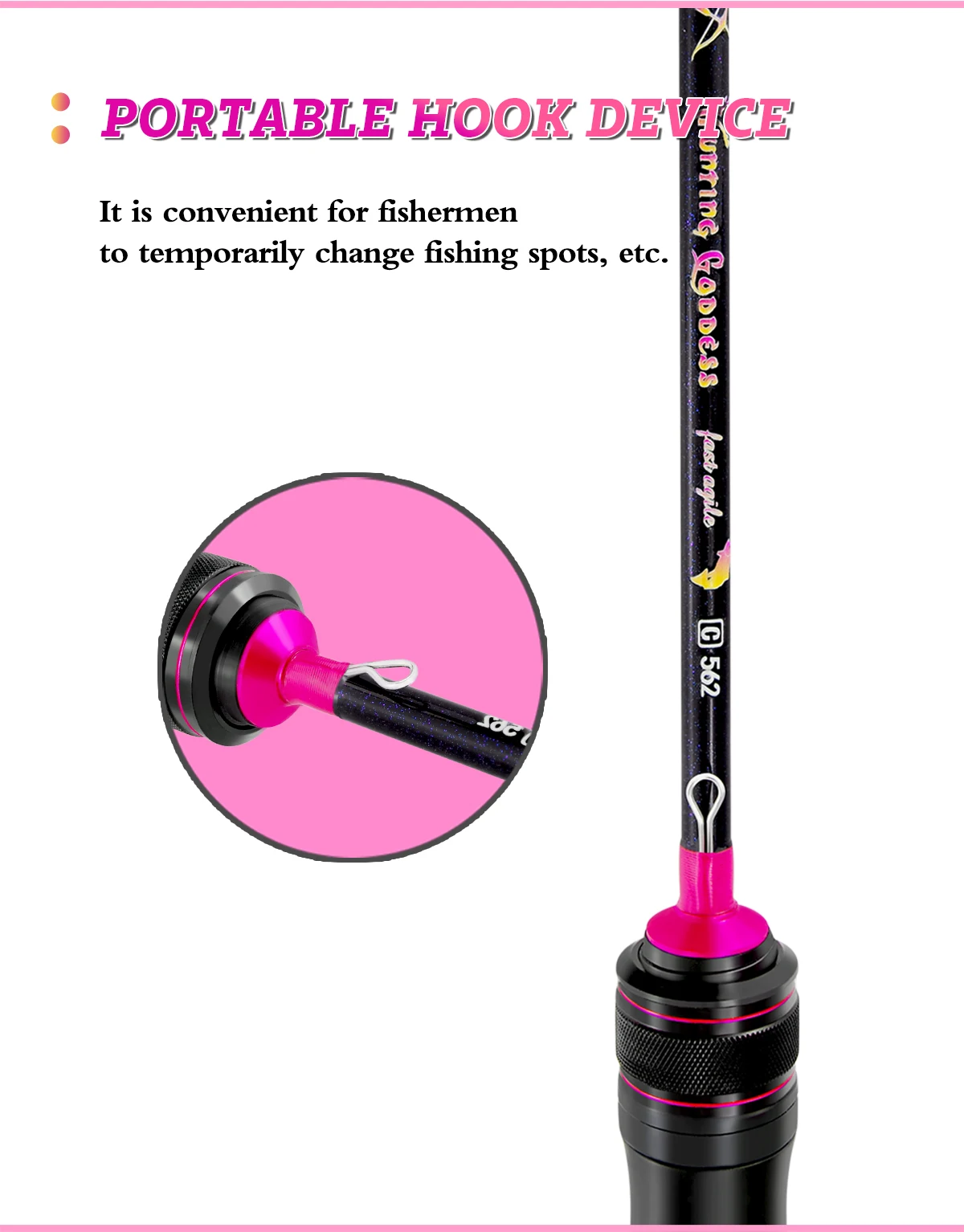 Hunting Goddess 40T Carbon Pink Color Punta sólida UL Rod
