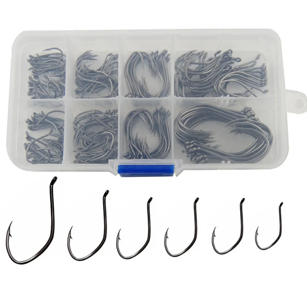 Hyaena 180 unids/caja anzuelo circular deportivo afilado gato pez bagre anzuelos de pesca anzuelo negro Acero de alto carbono