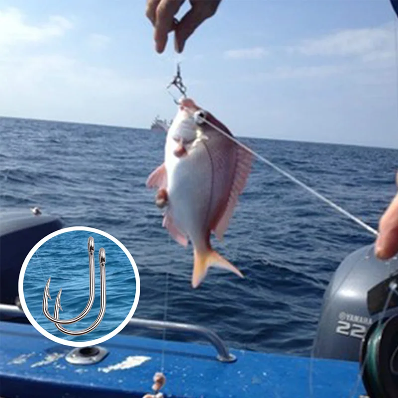 Hyaena 50 unids/lote anzuelo de pesca 9260 de acero inoxidable para barco oceánico aparejos de pesca accesorios anzuelo único de púas