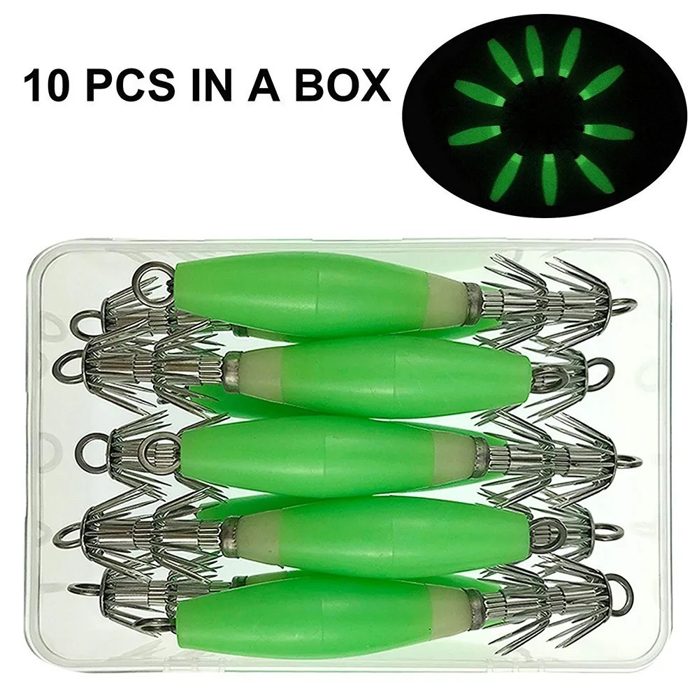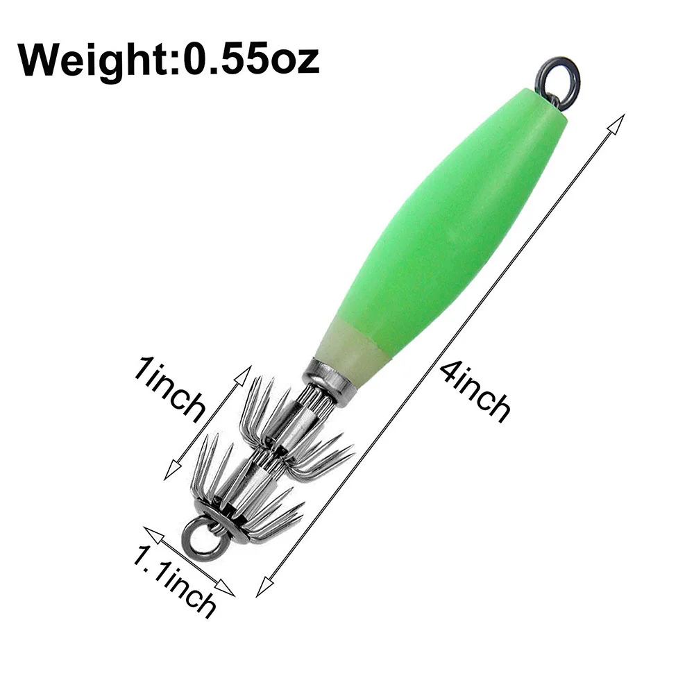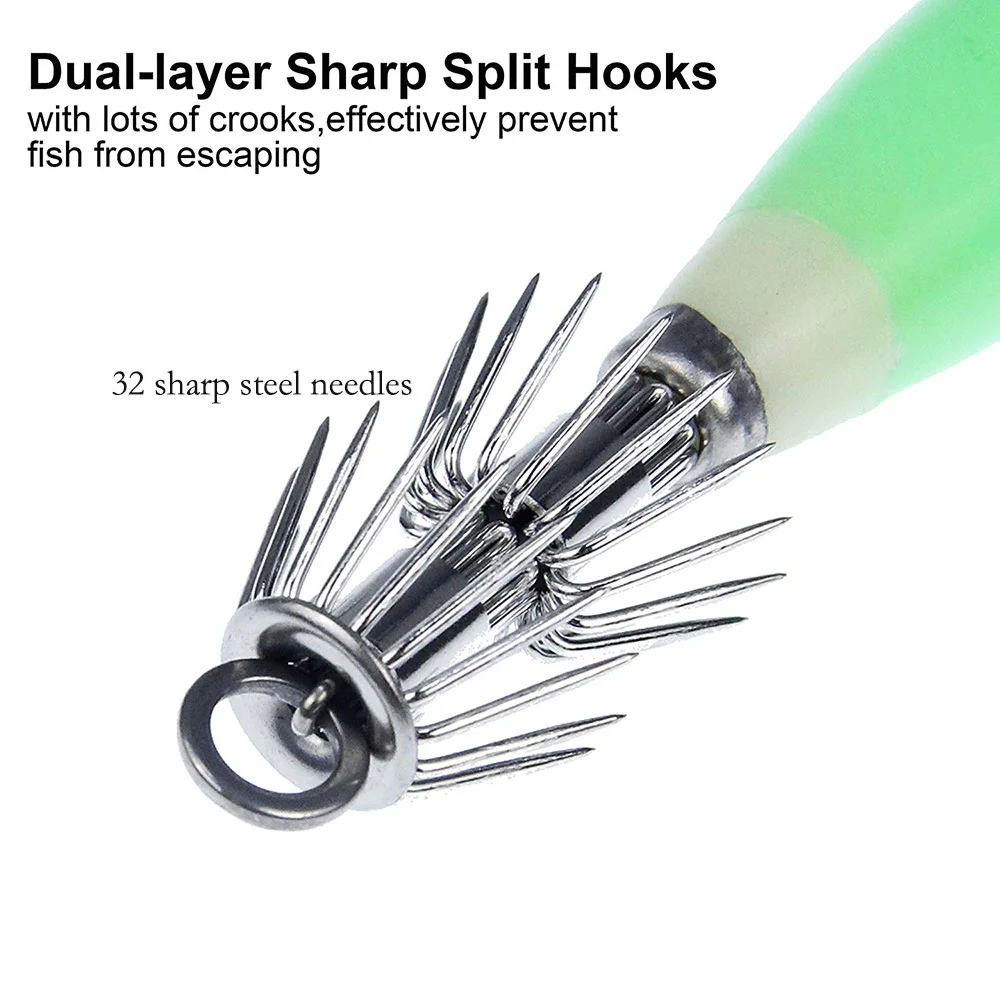 1. Las plantillas de calamar son su mejor opción para atrapar calamares, vienen con ganchos divididos afilados de doble capa y cuerpo luminoso.