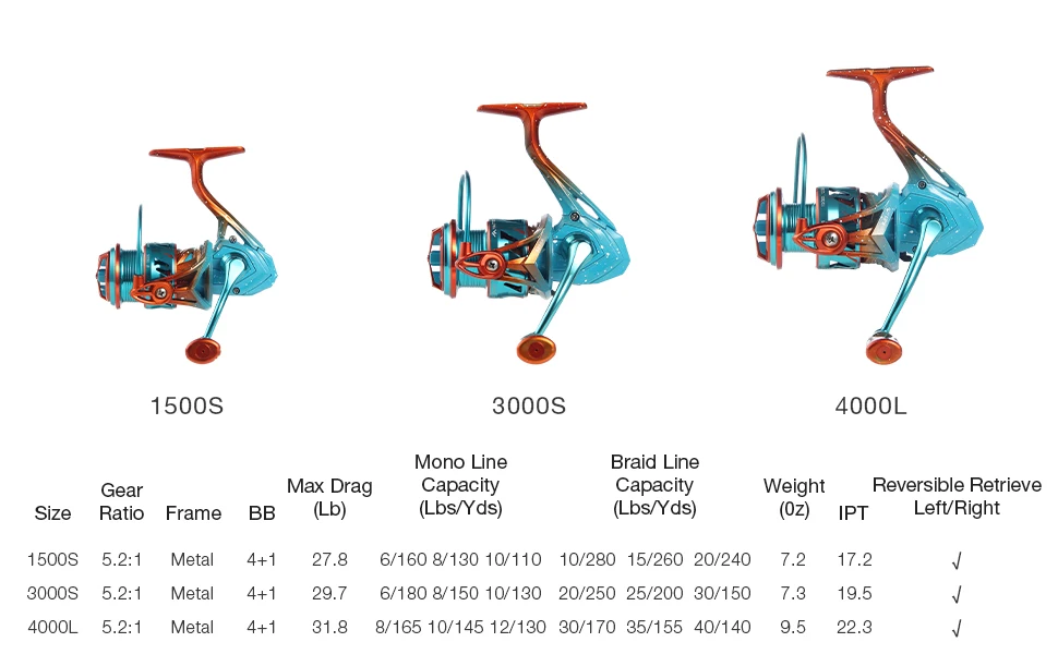 ICEMAN 1500S/3000S/4000L carrete de pesca giratorio 5,2: 1 relación de engranaje 4 + 1BB sistema de arrastre de fundición de larga distancia 27,1-31,8 libras