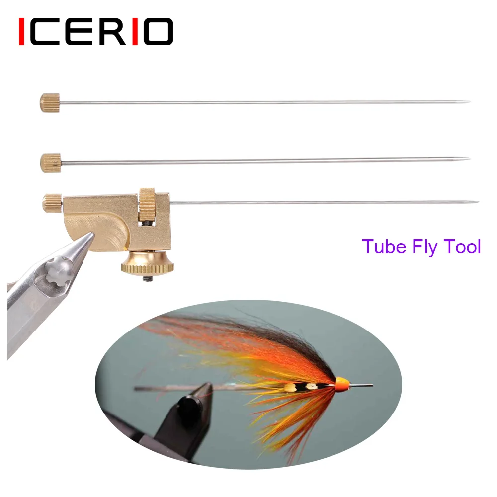 ICERIO 1 Juego de herramienta adaptadora de mosca de tubo de latón y acero inoxidable para serpentinas de moscas de tubo de salmón herramienta de atado de mosca aparejos de pesca con mosca