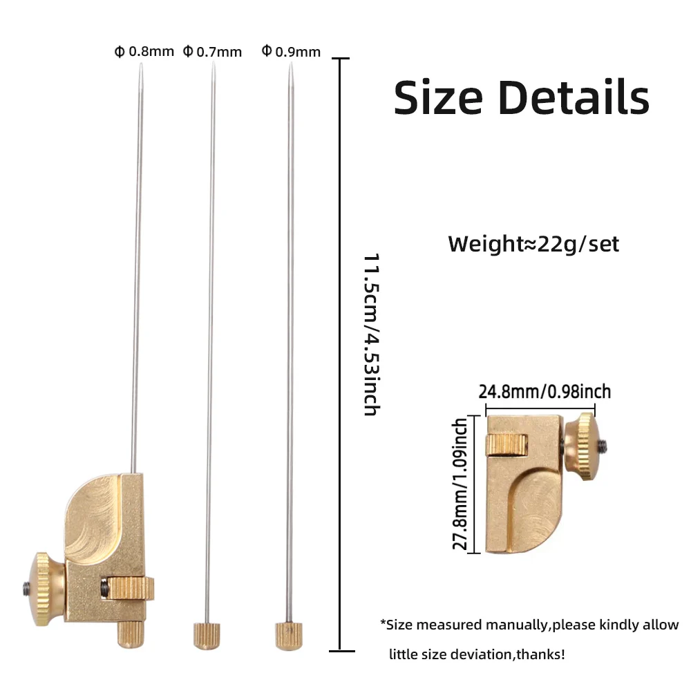 Embalaje: 1 Juego de herramientas para moscas de tubo (incluye 1 pieza principal y 3 agujas de diferentes tamaños)