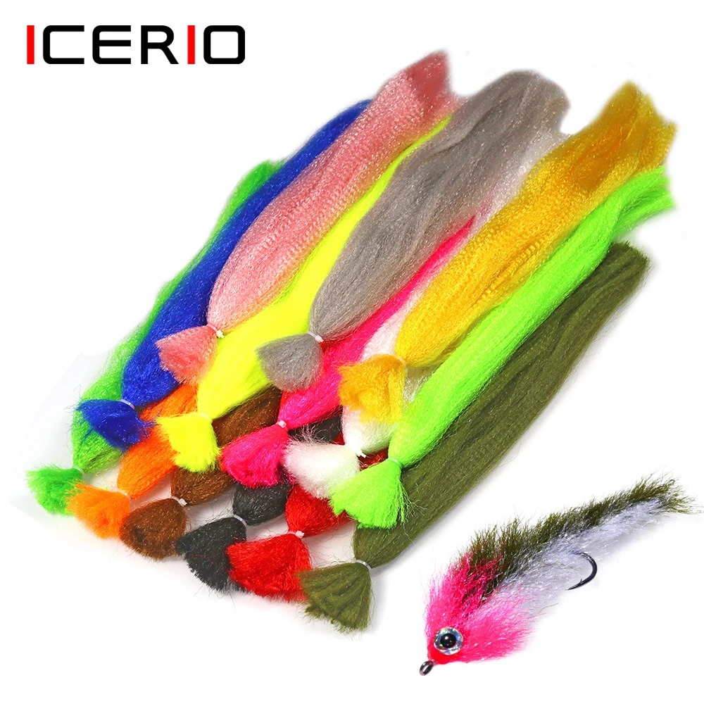 ICERIO 1 paquete de fibra fuzzy Slinky atado de moscas Material sintético Streamer Minnow Pike Musky Jig Señuelos atado de fibra