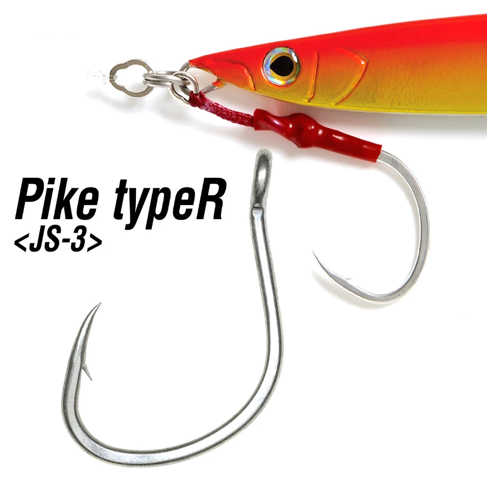 La JS 3 Pike Tipo R es la última jigging gancho de señuelo Se puede lograr una penetración brillante debido a su amplio vaporizador, calibre y punto largo. ¡La Js 3 es un excelente todo jigging gancho adecuado para una amplia gama de pequeños peces de arrecife a la mayor juego de pescado como Gt y Amberjacks!