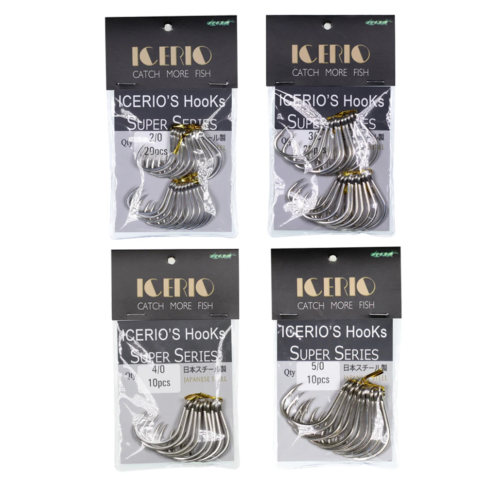 ICERIO 10/20 piezas puntos brillantes de Kirbed de estaño gancho de ayuda de Jigging lento Pike JS-3 anzuelos de pesca de agua salada anzuelos anticorrosión