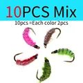 ICERIO 10 Uds moscas de pesca de trucha Scud camarones Scud Cezch mosca pesca ninfas#12 Gancho para mosca sin púas