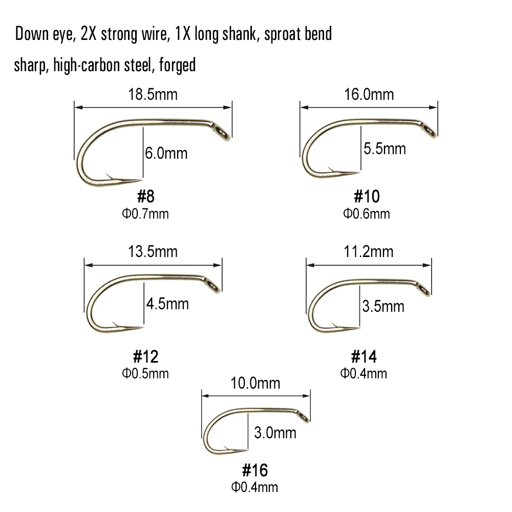 Especificaciones: Ojo de plumón, 2X alambre fuerte, 1X vástago largo, curva afilada, acero de alto carbono, forjado.