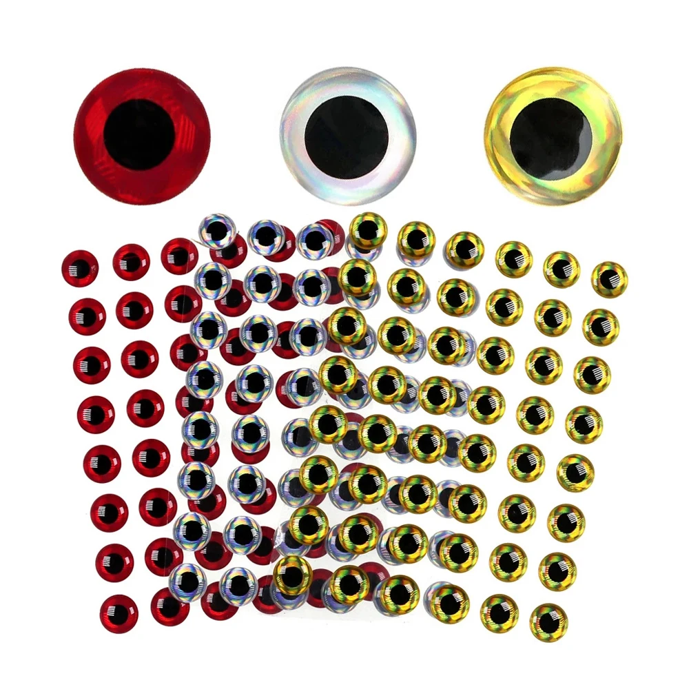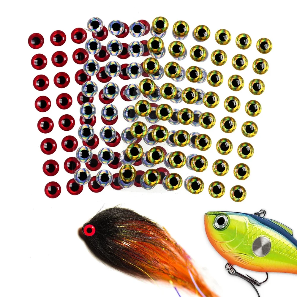 ICERIO 100 Uds holográfico 3D epoxi ojos de pez para pescar mosca DIY señuelos Jig cebos Crankbaits Material para hacer oro rojo plata