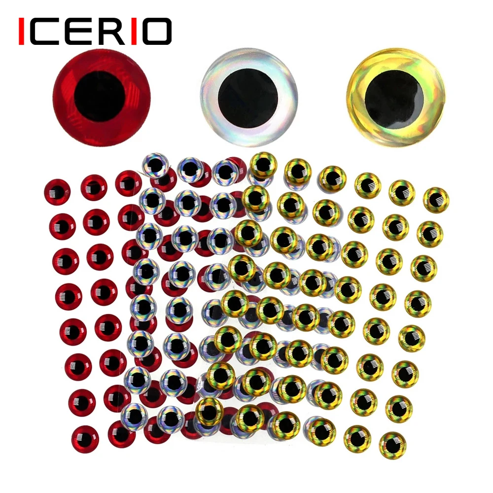 ICERIO 100 Uds holográfico 3D epoxi ojos de pez para pescar mosca DIY señuelos Jig cebos Crankbaits Material para hacer oro rojo plata