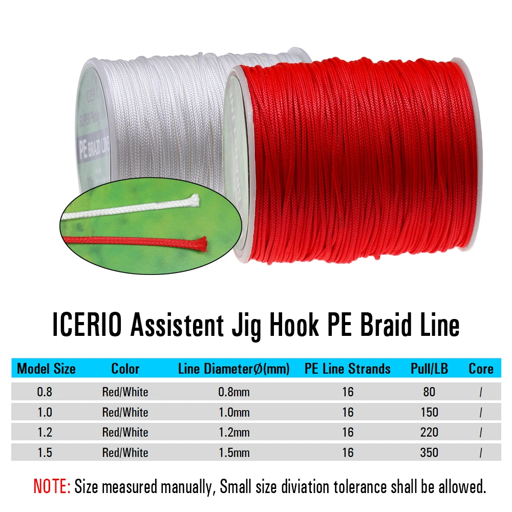 ICERIO-anzuelos de asistencia trenzados de PE de 100 metros, línea de anzuelos de pesca en agua salada, señuelo de pesca artesanal