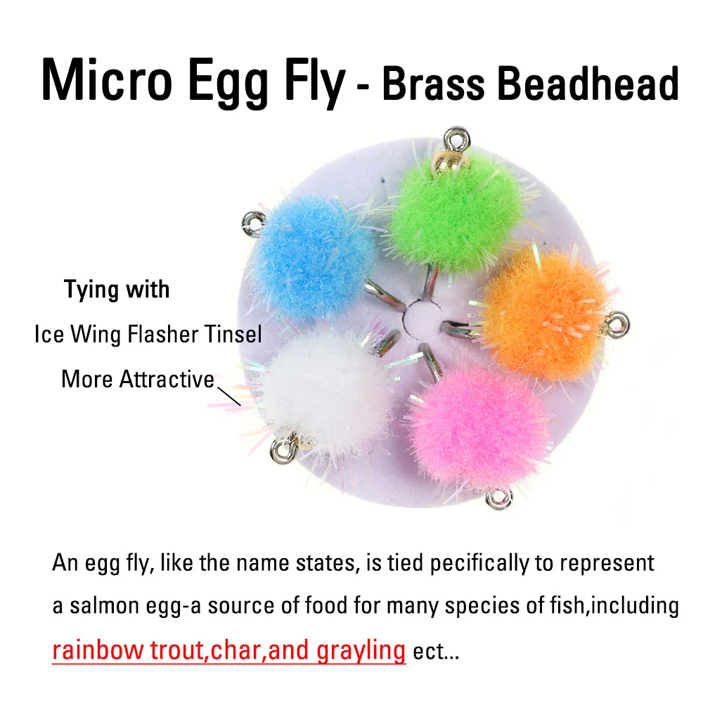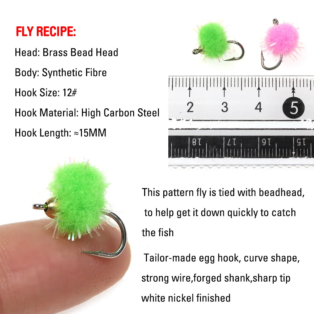 ICERIO 10PCS 12# Mrico Beadhead huevo moscas hundimiento salmón Roe cebo con ala de hielo Flash oropel trucha Grayling Char señuelo de pesca