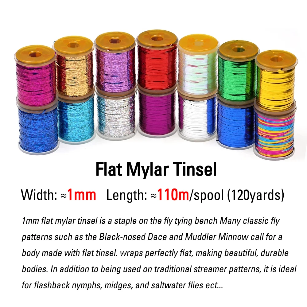 ICERIO 120 yardas 1mm tira de cristal brillante holográfico plana Mylar oropel mosca atado materiales para Flashback ninfa Streamer señuelo cebo