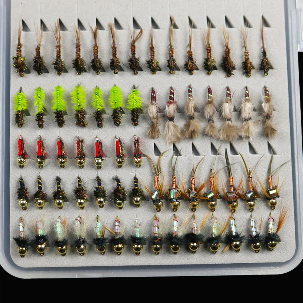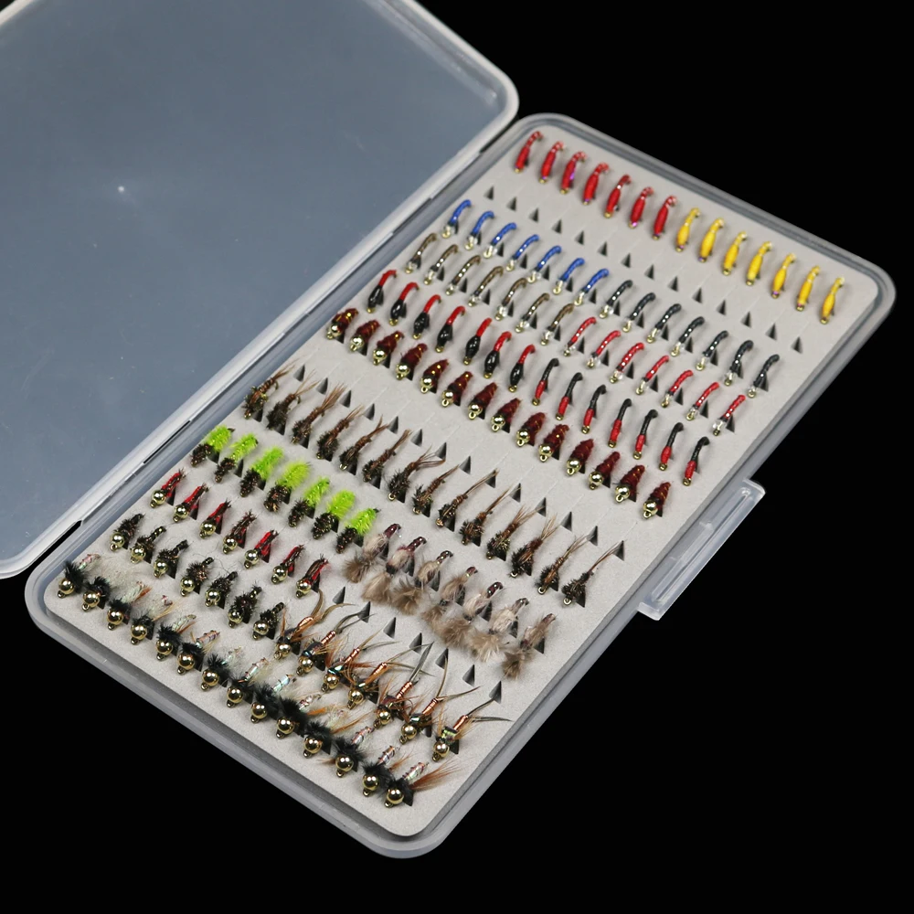 ICERIO 133 unids/set ultrafino portátil Ninfa Scud Midge moscas Kit surtido con caja señuelo de mosca de pesca de trucha