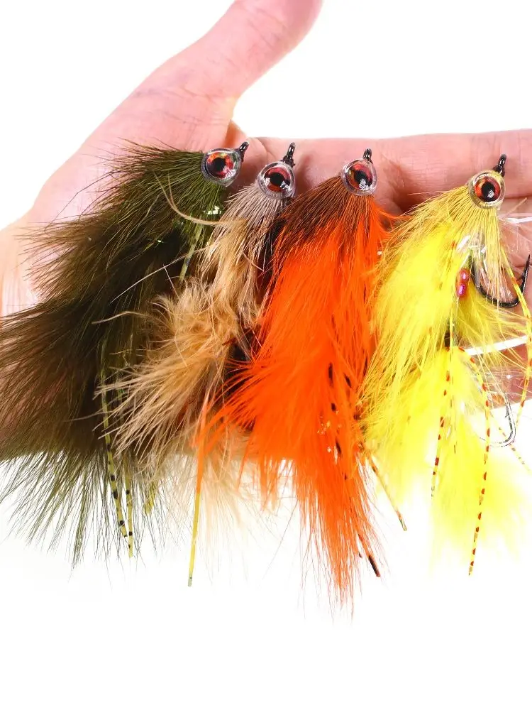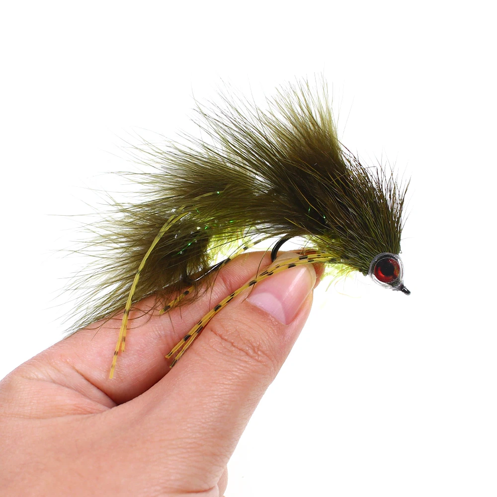 ICERIO 2/4 Uds pesca en agua salada ciervo serpentinas de pelo gran juego señuelo de pesca con mosca articulado
