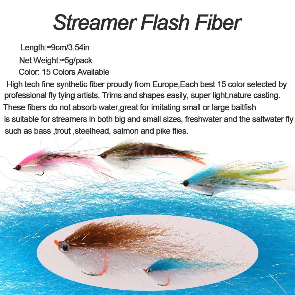 ICERIO 2 bolsas Flash Streamer fibra sintética para agua dulce agua salada Minnow cebo pescado trucha lubina Lucio mosca atado Material