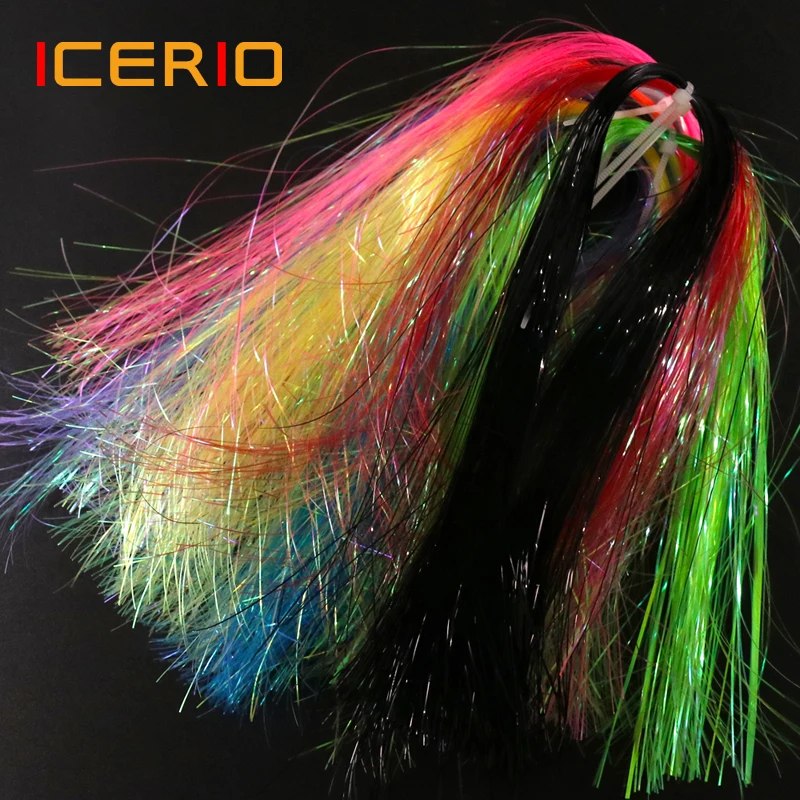 ICERIO, 2 paquetes de fibra sintética de alas de hielo, Flash plano, cristal, Mirage, Flashabou, serpentinas de oropel, ninfas, materias primas para atar moscas