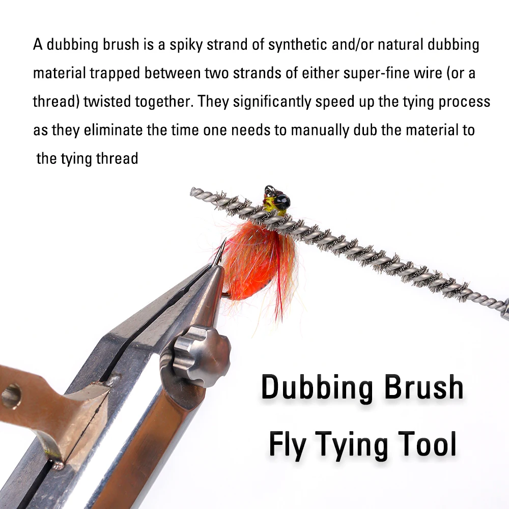 ICERIO 2 uds Mini alambre de cobre dientes cepillo de doblaje herramienta de atado de moscas para burlar cuerpos dub alas cebo cuerpos de pescado