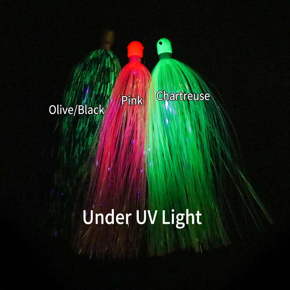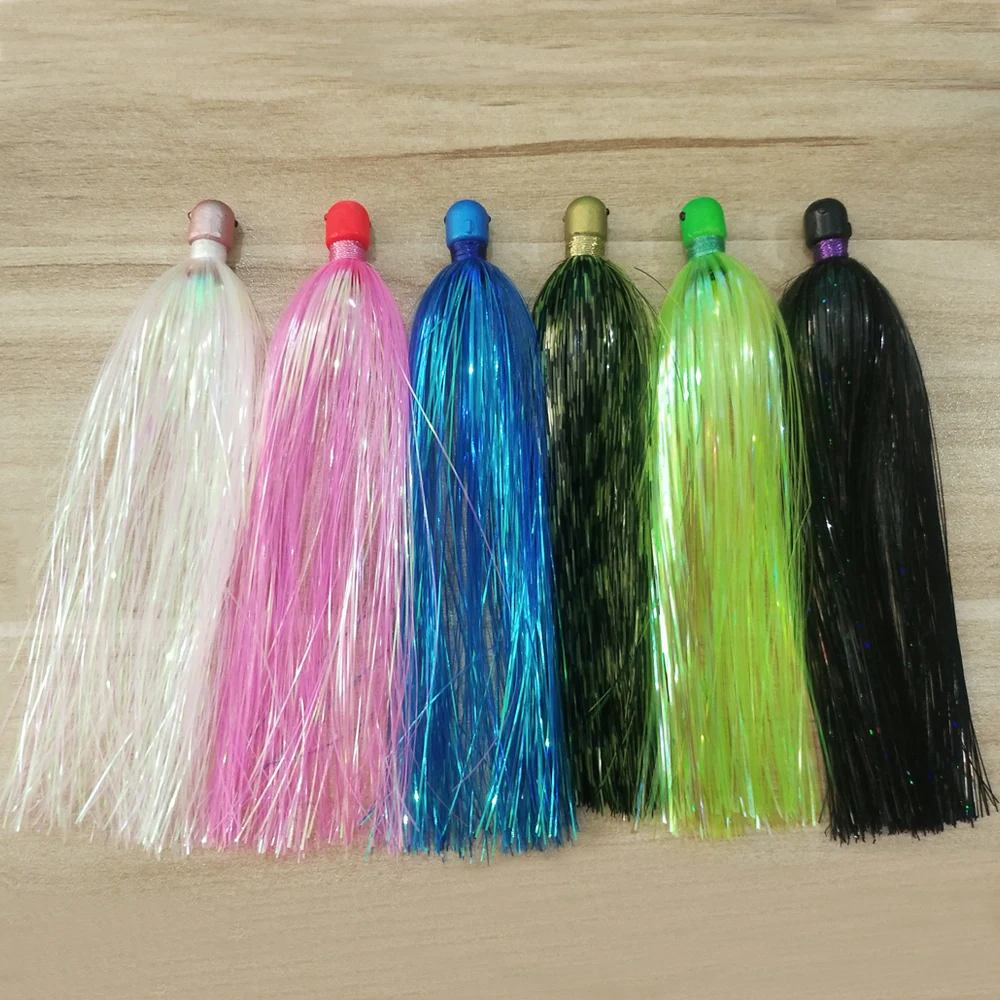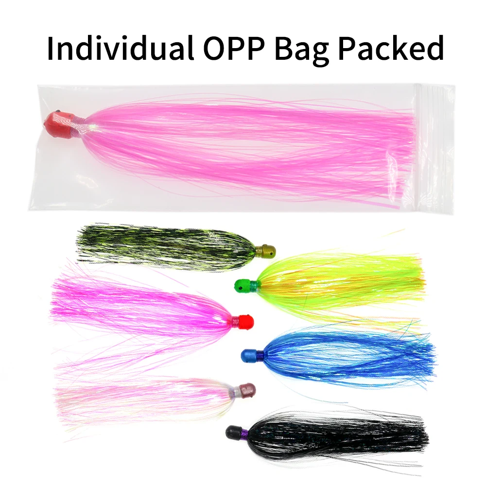 【Alta calidad】El tirador de pesca está hecho de una cola de oropel flashabou suave ultrafina, cabezal de plantilla colorido resistente para curricán de alta velocidad y hundimiento rápido. Fuerte y duradero para la pesca en agua salada