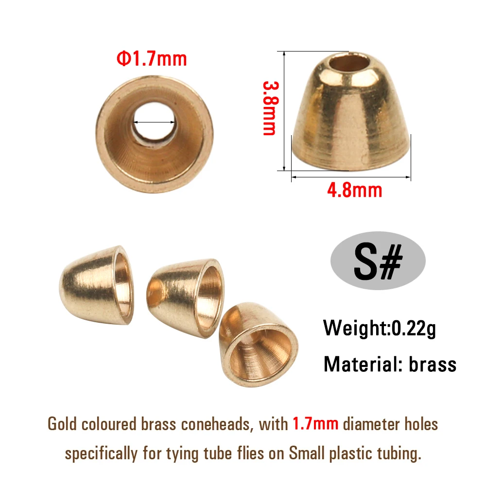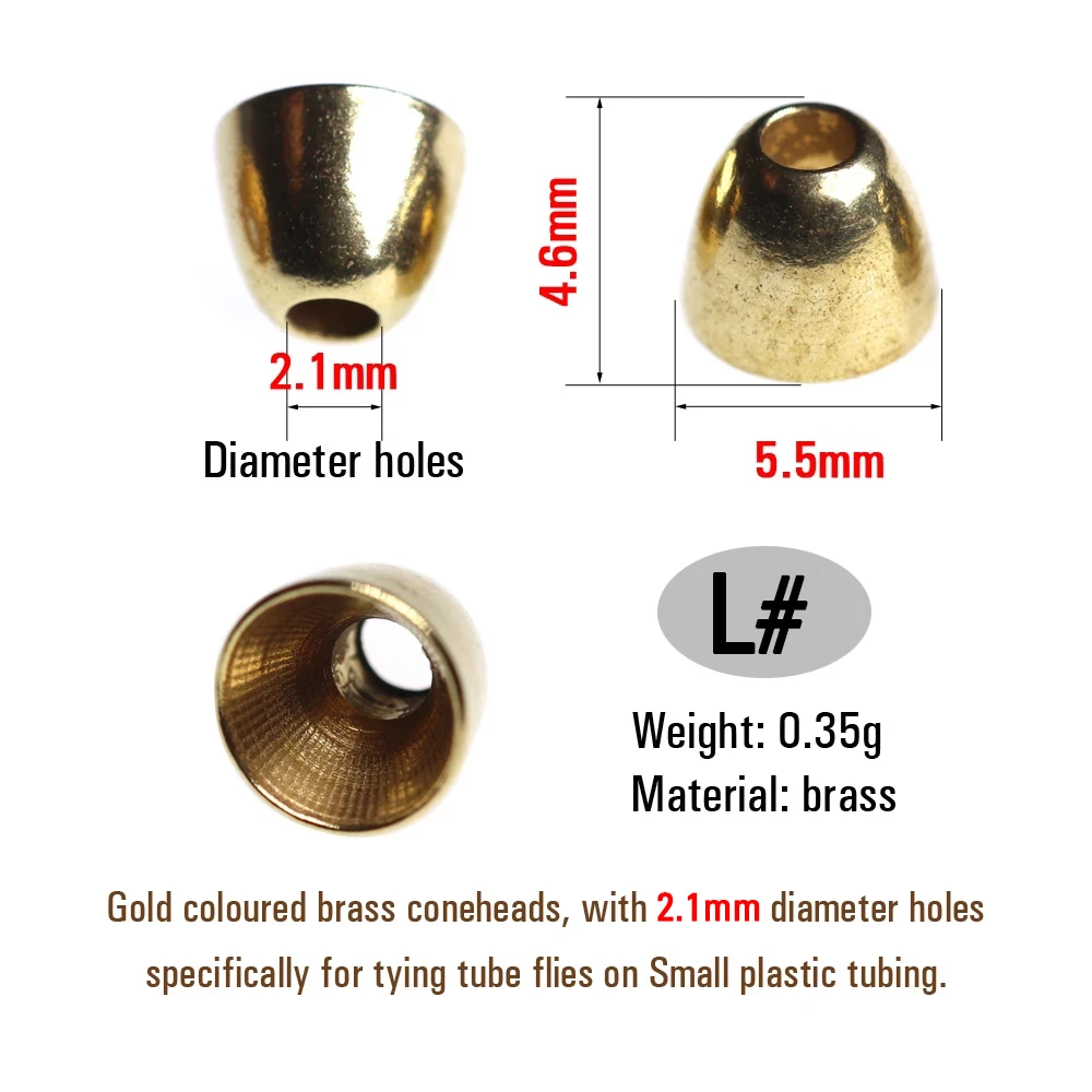 ICERIO 20PCS 4.8mm 5.5mm Brass Fly Tying Cone Heads Fly Tying Material for Tube Fly Streamer Zonker Trout Lure Fly Beads