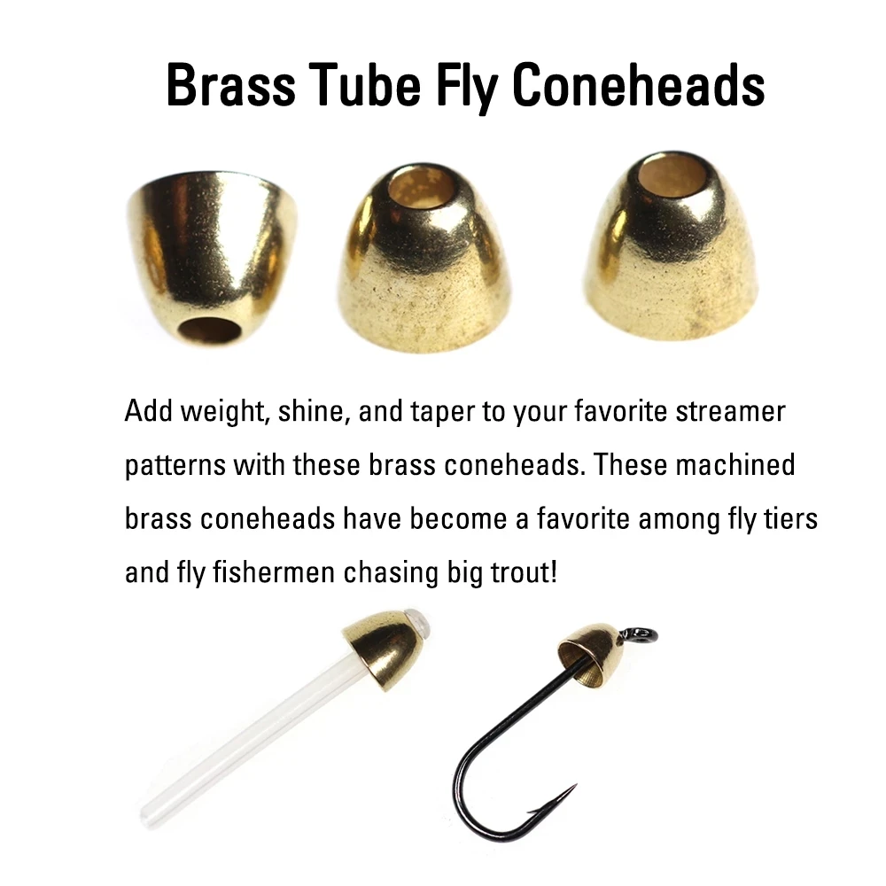 These brass cone heads are heavy enough to get flies down faster. They are perfect for woolly buggers, streamers, muddler minnows or saltwater flies.