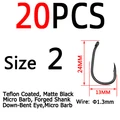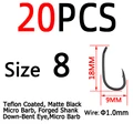 Kn Carp Hook Material: High Carbon Steel. Color: Matt Black (Teflon Coating). Barbed sizes available: 2, 4, 6, 8, 10. Package Unit: 20 per packet. They are incredibly strong in all sizes, being manufactured from the highest grade forged high carbon steel. They feature a razor sharp chemically etched beaked point and an inturned eye that work together to give the best possible hook holds, as they penetrate quickly until the hook is totally embedded securely down to the bend. The main one being that the fish finds it much harder to get rid of it once it has sucked it in.