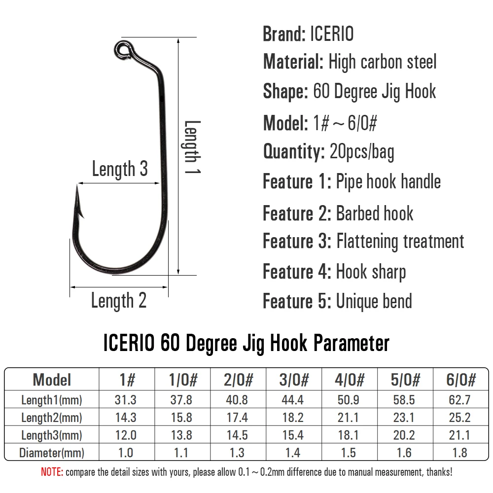 ICERIO 20 Uds. Gancho de plantilla de 60 grados, ganchos de alambre de acero forjado de agua dulce y salada